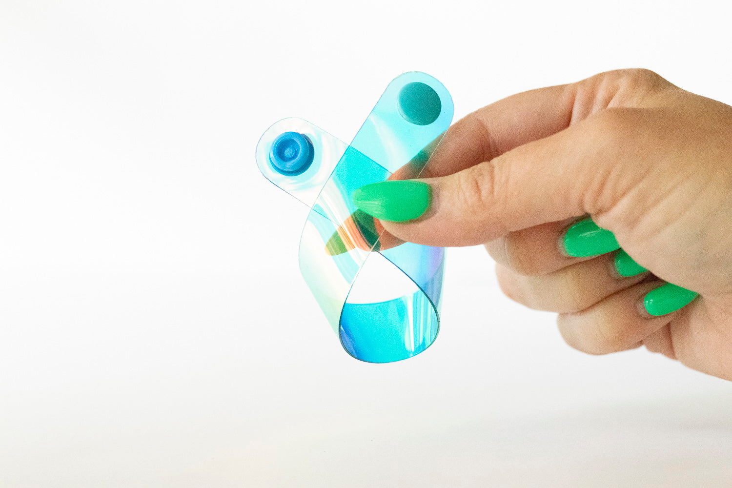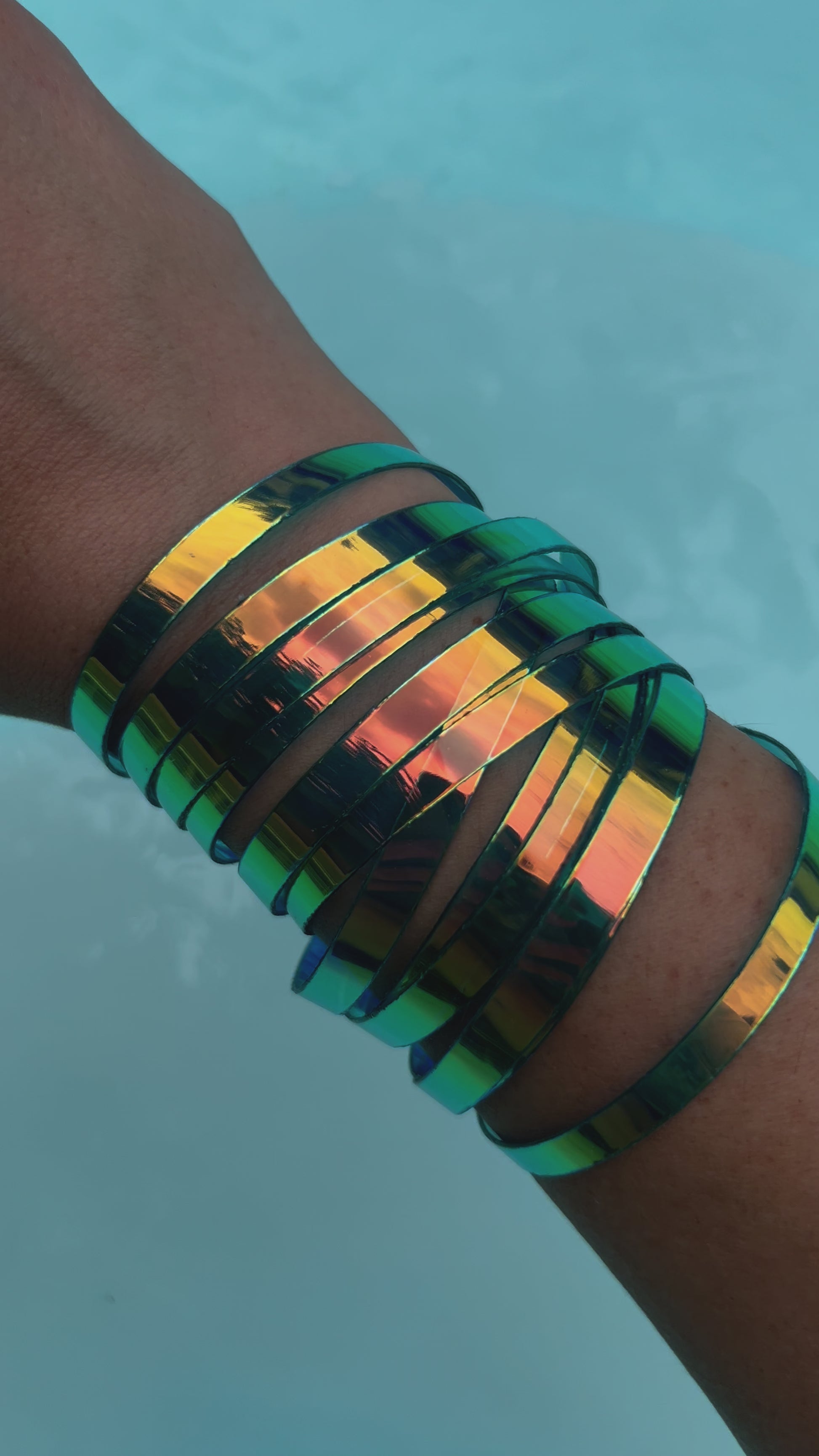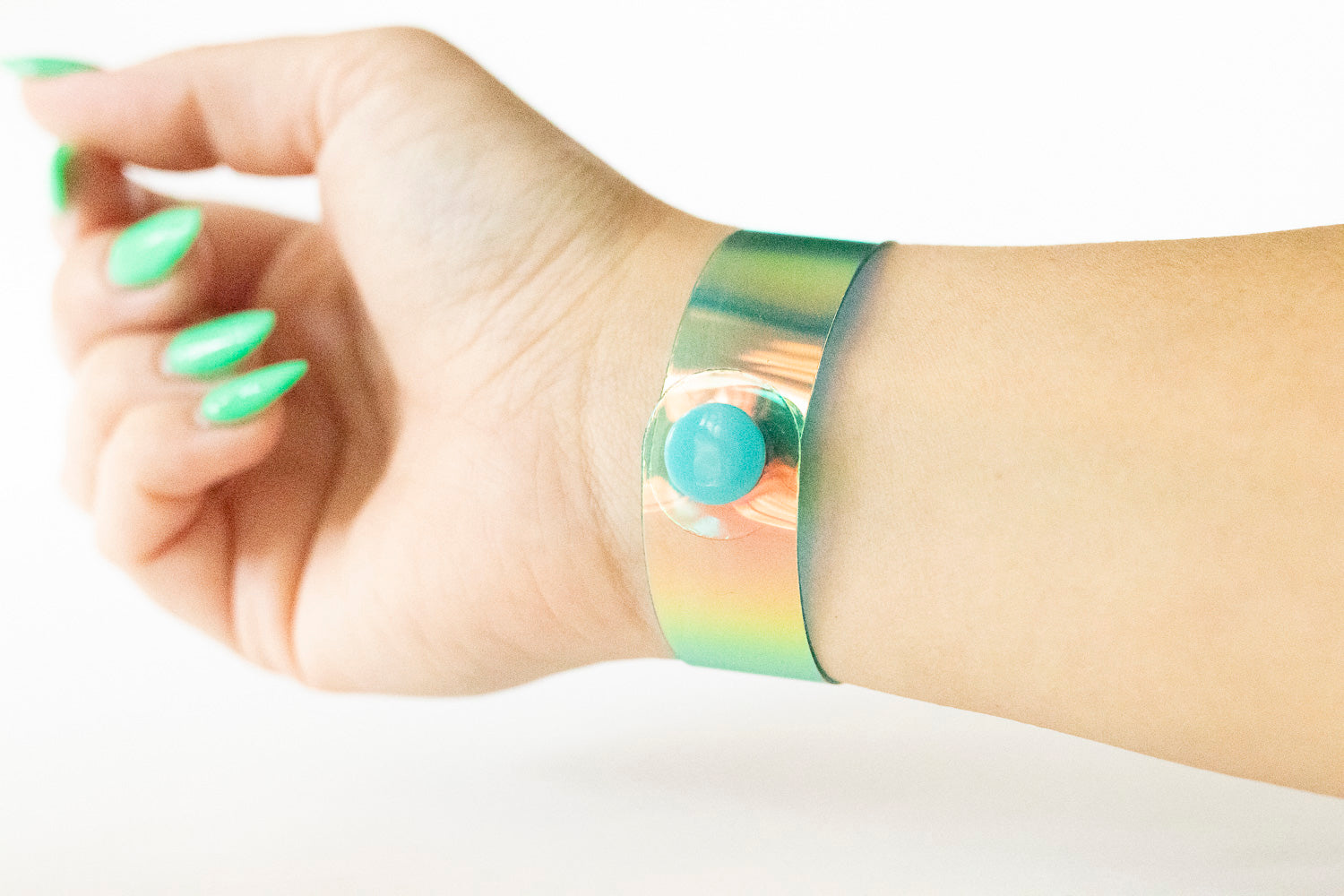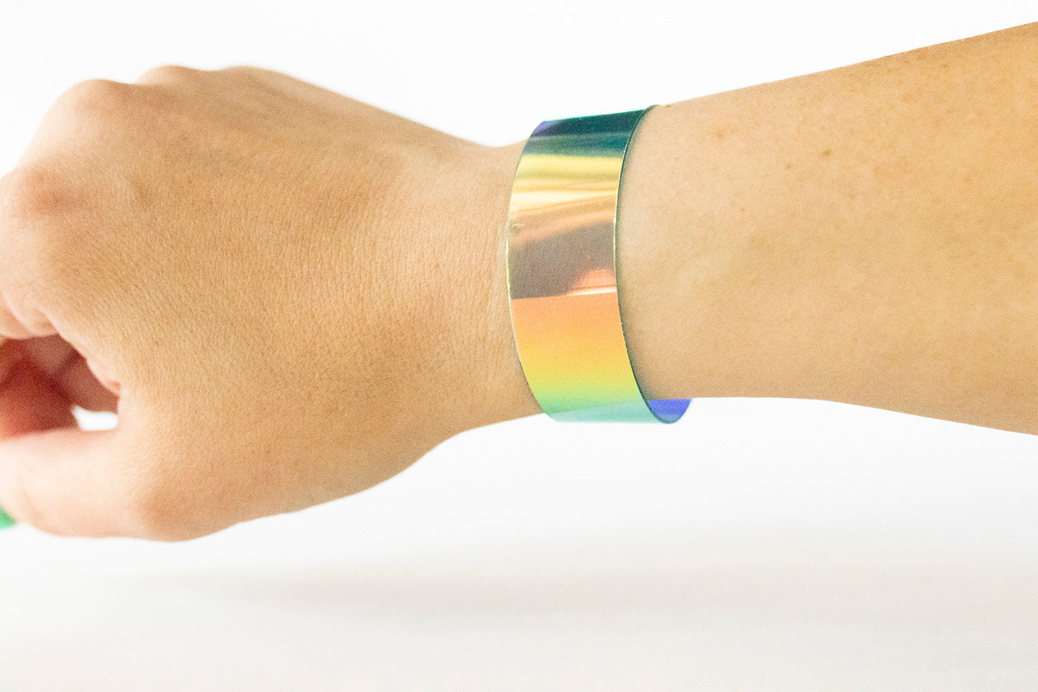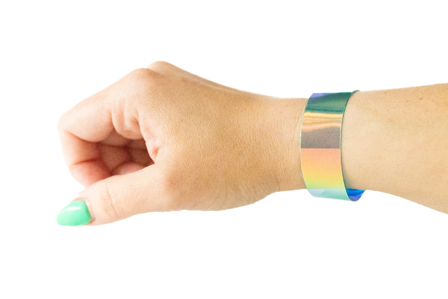 This sophisticated jelly cuff is the perfect piece to up your accessory game. The wider slim cuff design makes it the perfect subtle statement, and it can be worn alone or stacked with other pieces for an eye-catching look. Crafted with 100% genuine jellyn vinyl.