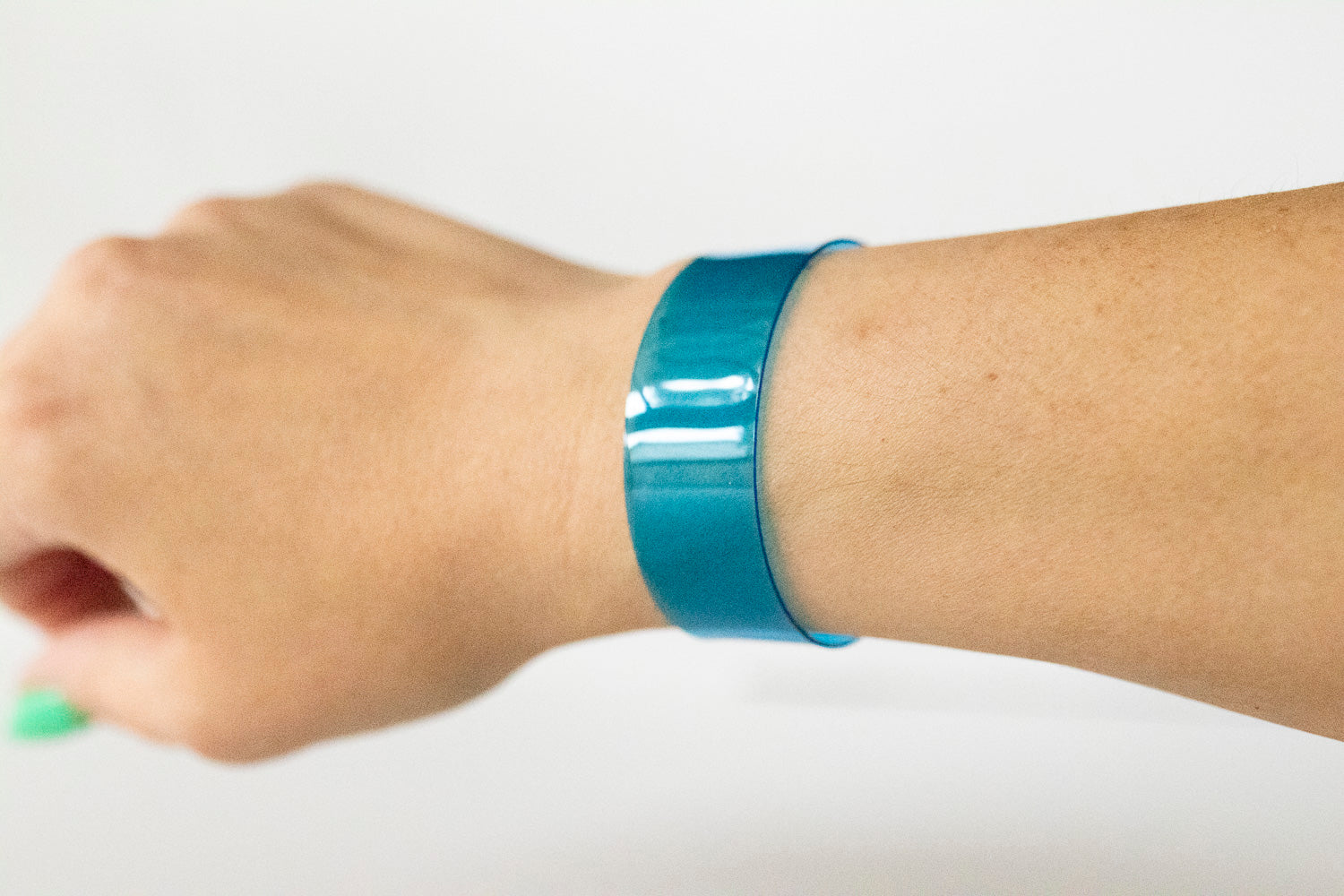 This sophisticated jelly cuff is the perfect piece to up your accessory game. The wider slim cuff design makes it the perfect subtle statement, and it can be worn alone or stacked with other pieces for an eye-catching look. Crafted with 100% genuine jellyn vinyl.