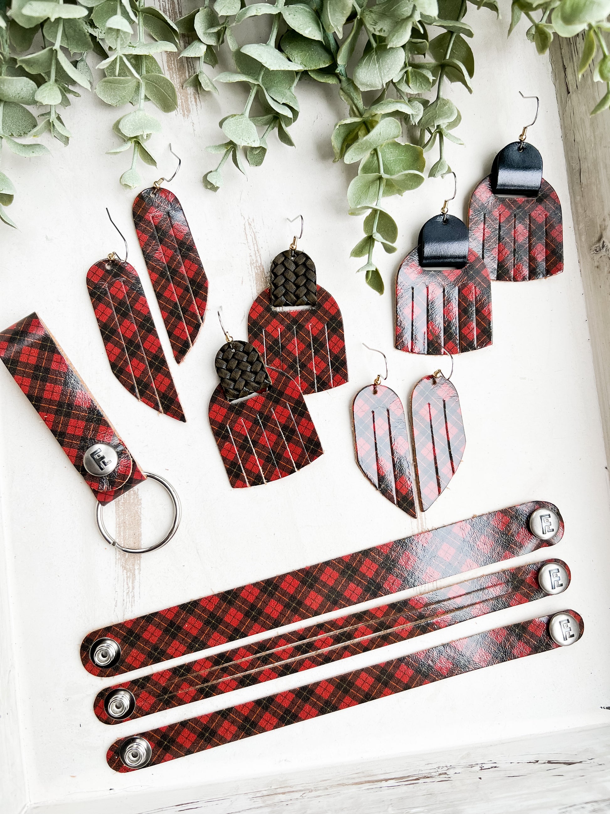 Leather Bracelet / Slim Cuff / Tartan