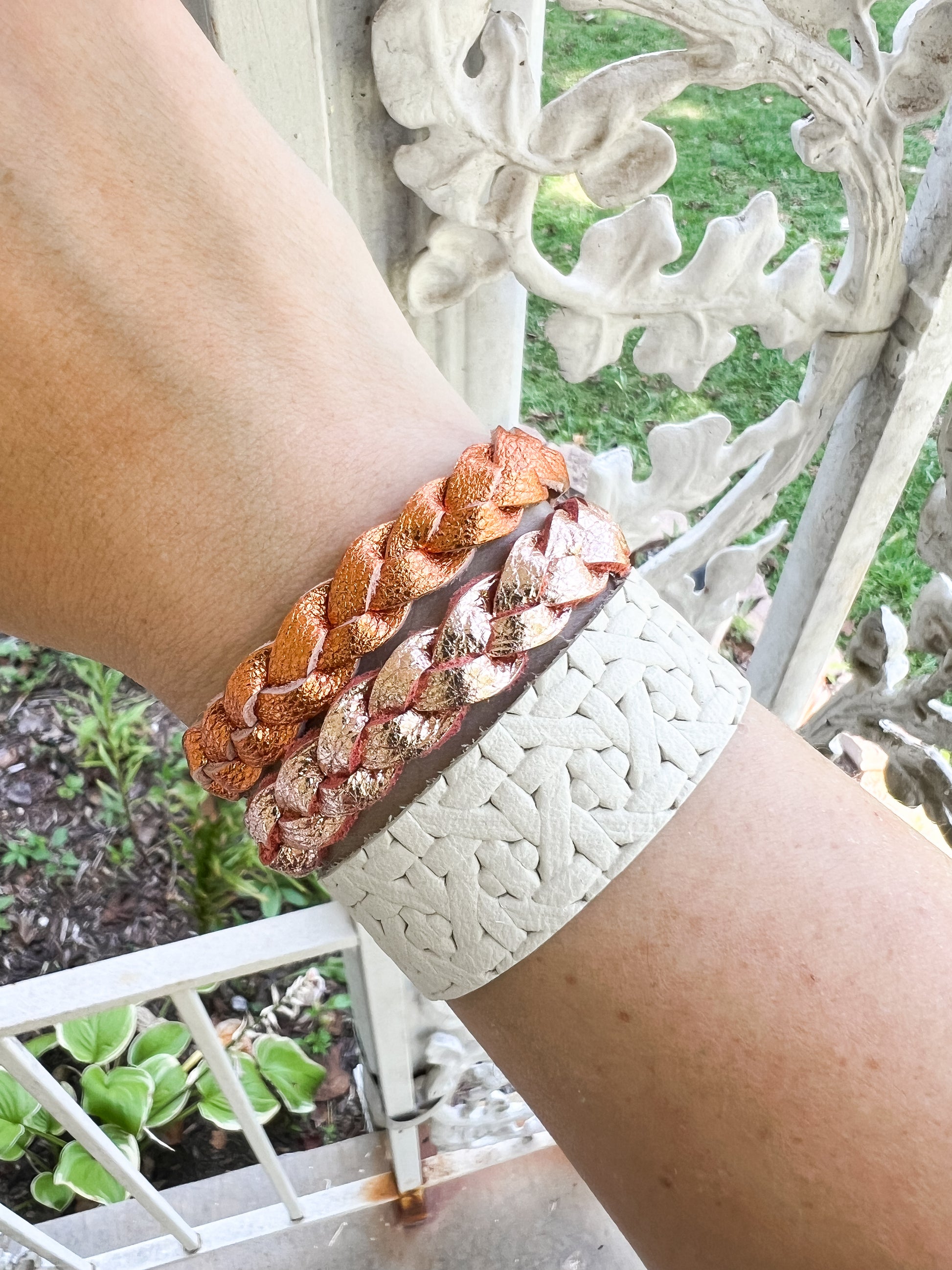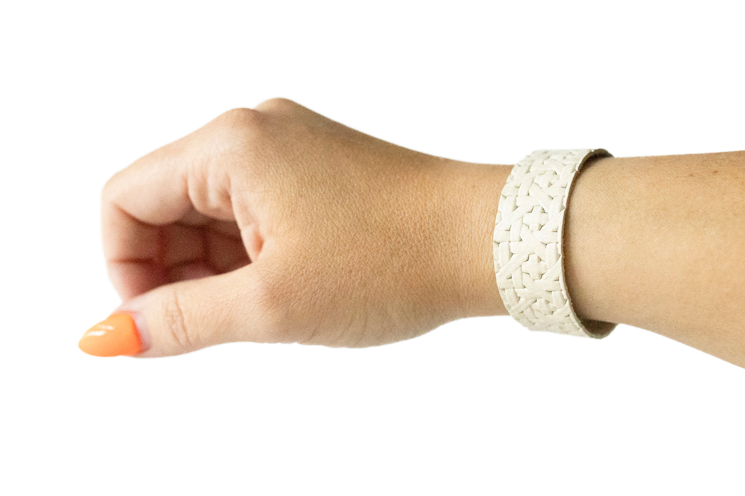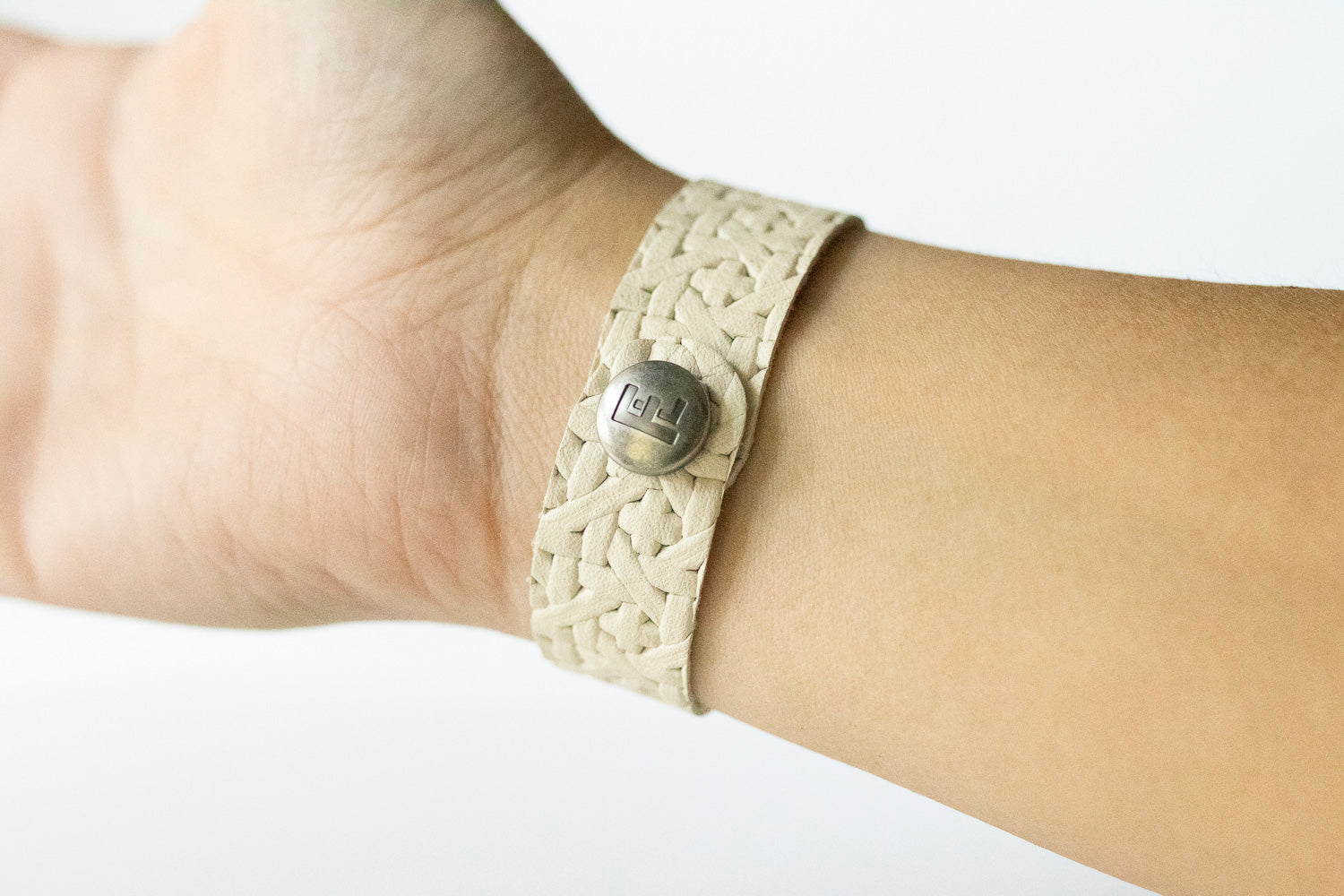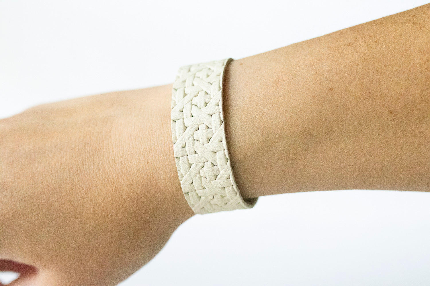 Leather Bracelet / Slim Cuff / Woven Chalk White
