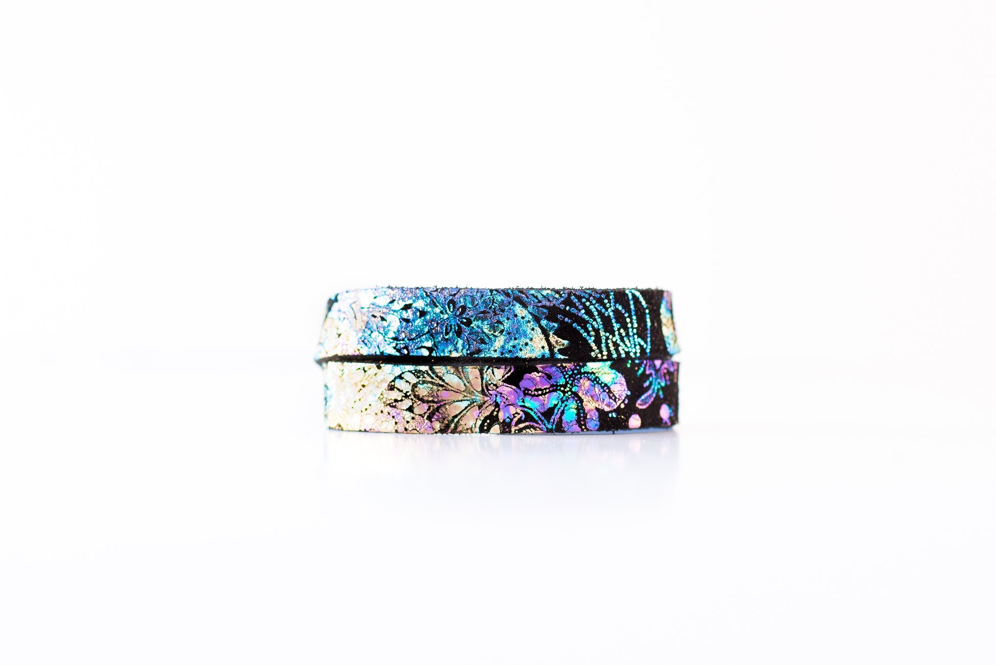 Leather Bracelet / Slim Wrap Cuff / Cosmic Midnight