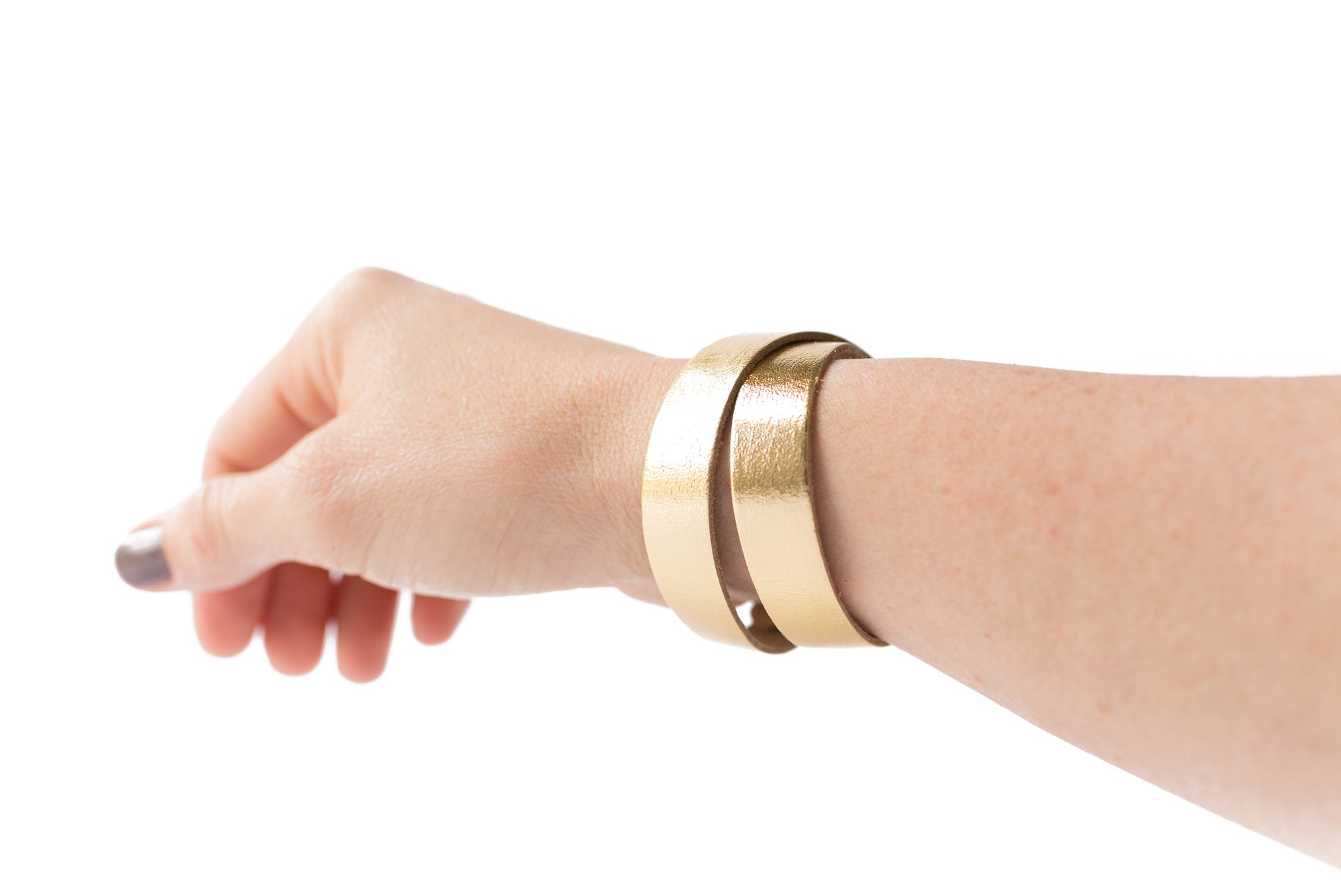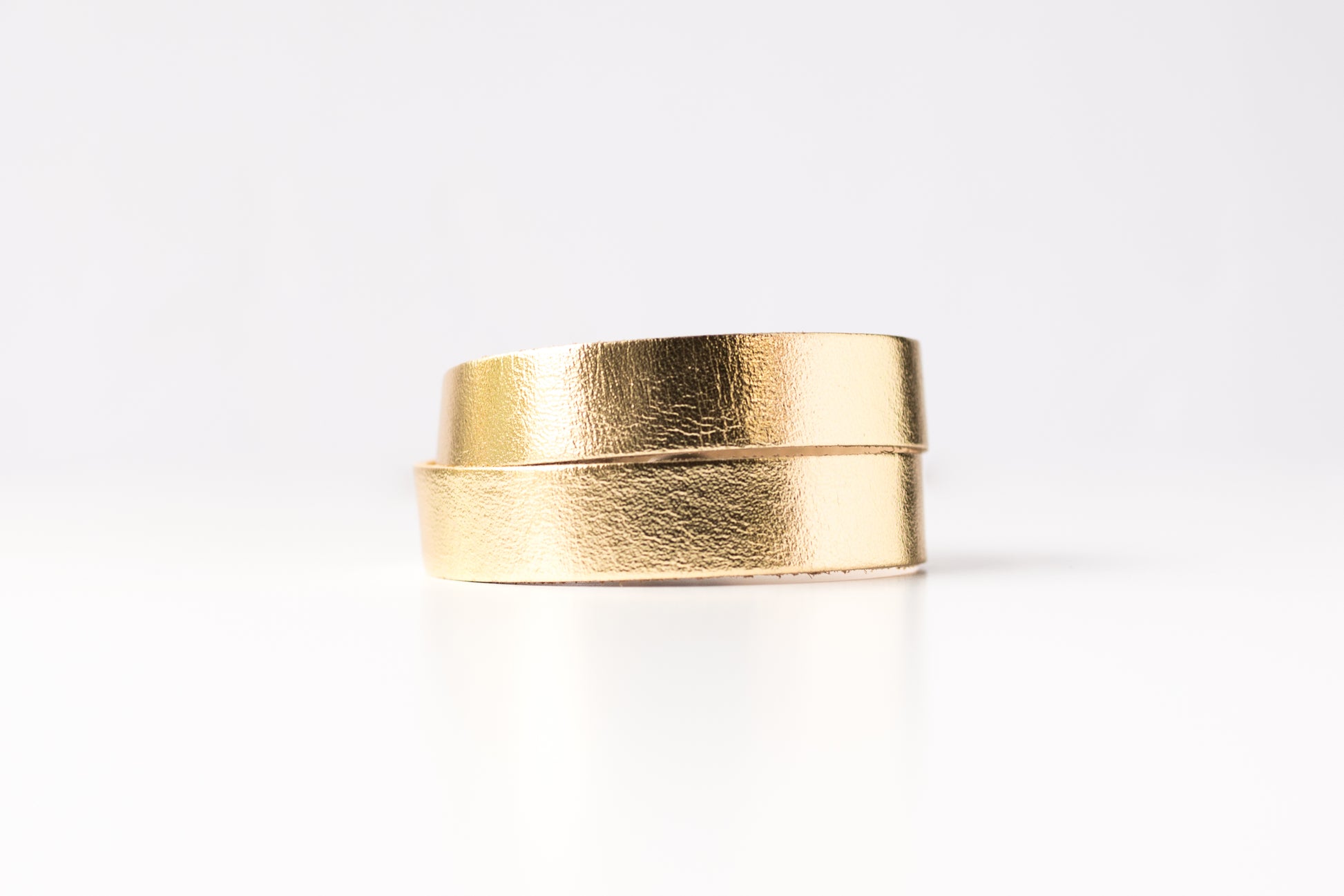 Leather Bracelet / Slim Wrap Cuff / Metallic Gold