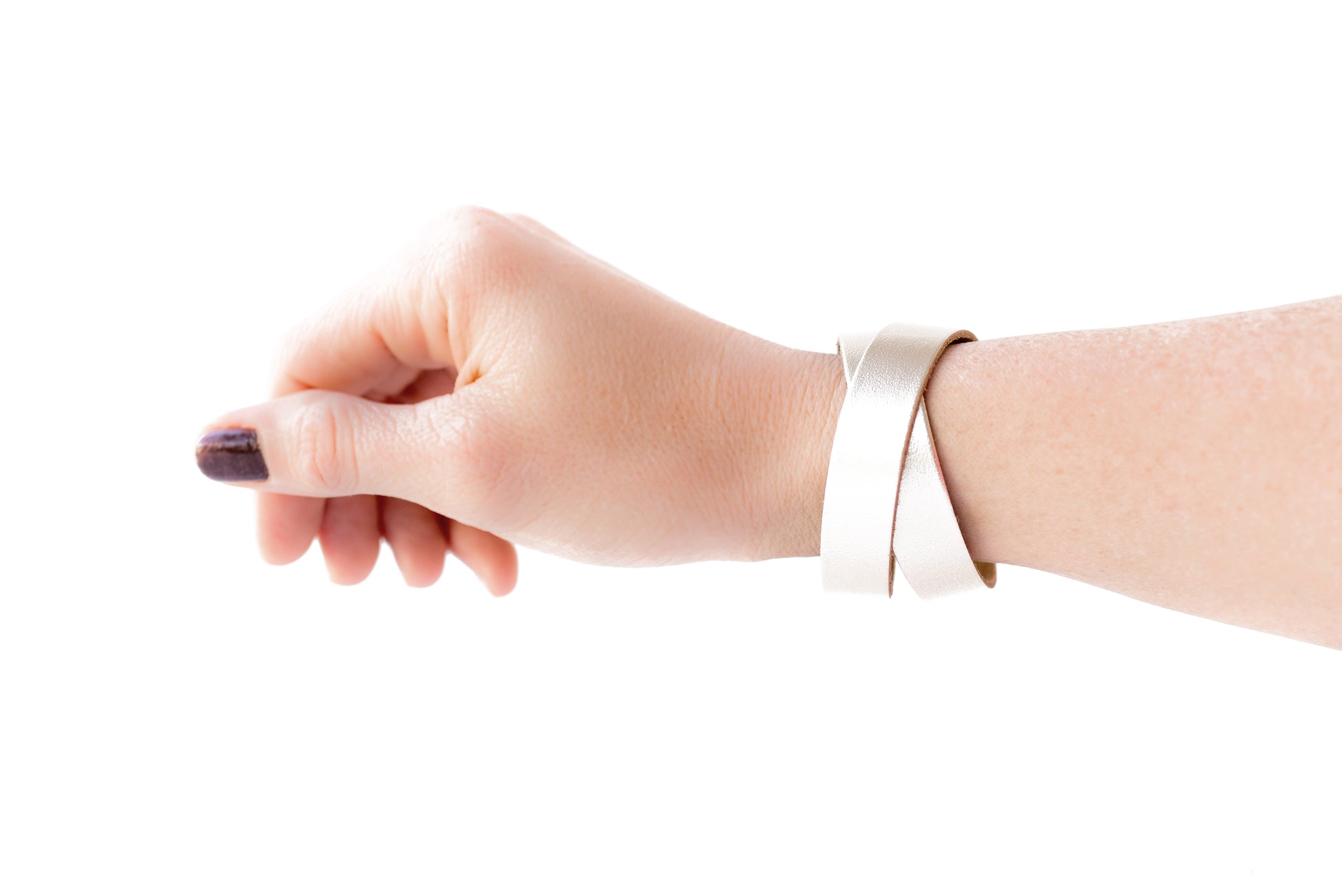 Leather Bracelet / Slim Wrap Cuff / Metallic Platinum