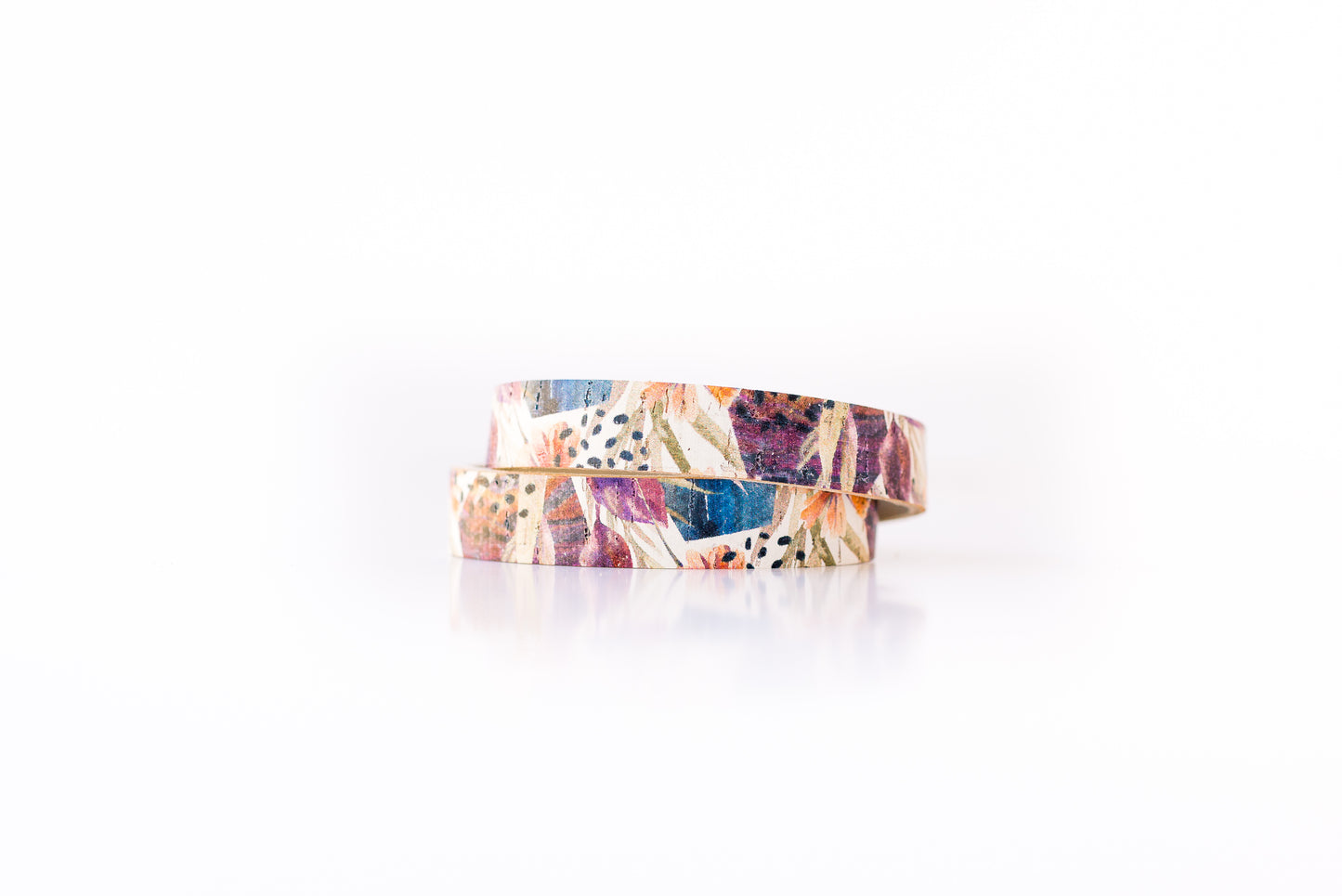 Leather Bracelet / Slim Wrap Cuff / Pressed Flowers Cork