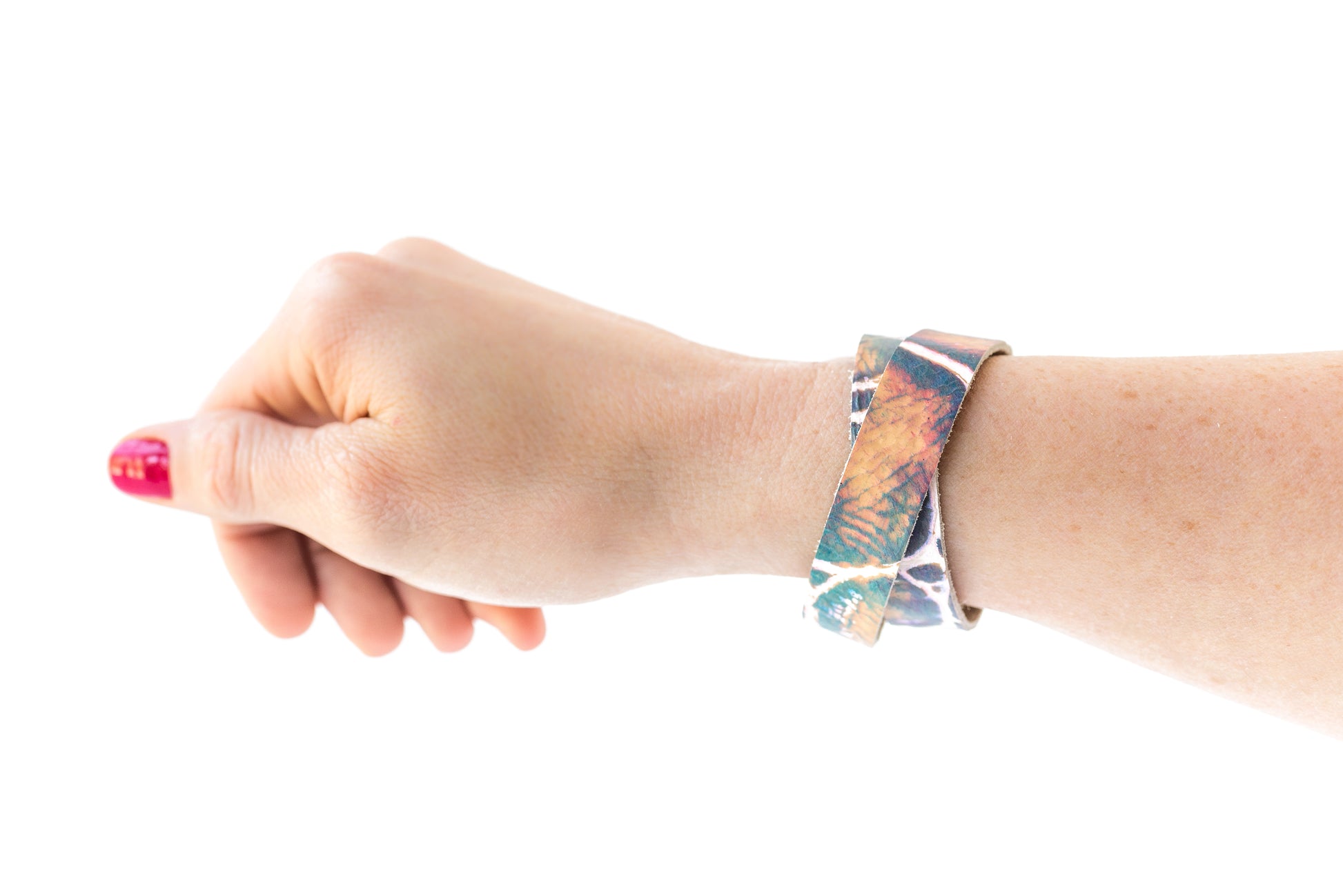 Leather Bracelet / Slim Wrap Cuff / Prism Reptile