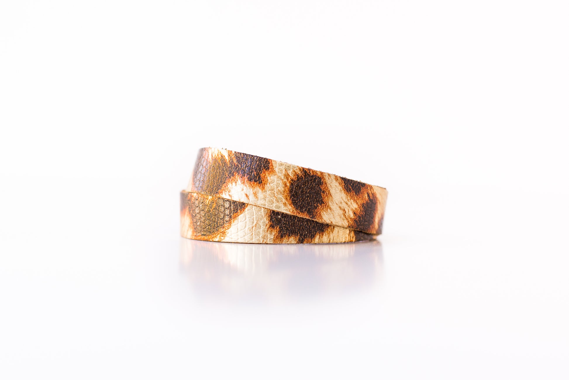 Leather Bracelet / Slim Wrap Cuff / Shimmer Big Cat