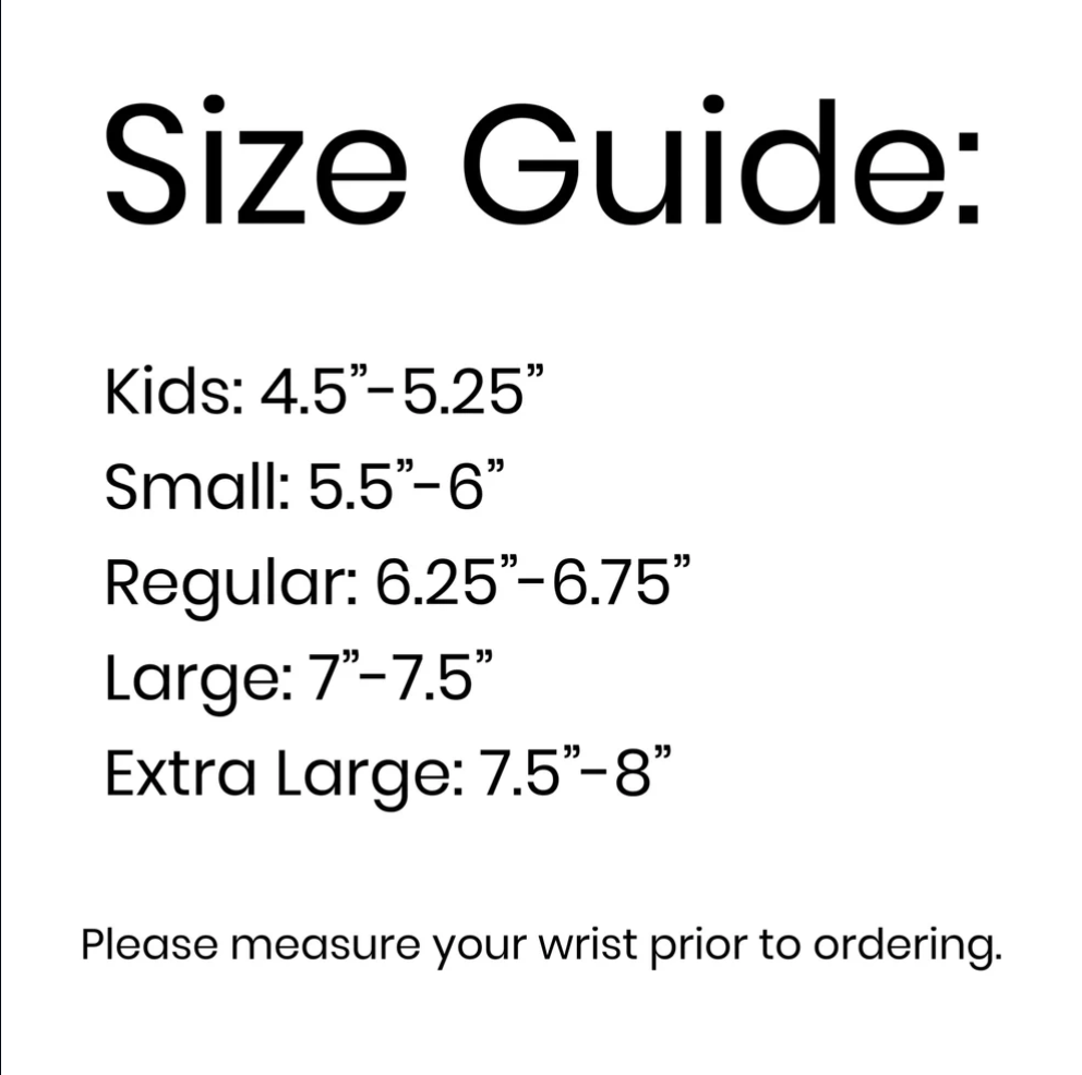 Prior to purchasing please make sure of your wrist size. To get the most accurate measurement please use a soft-sided measuring tape. Since leather does stretch a bit it's always best to size it to fit your wrist exactly.