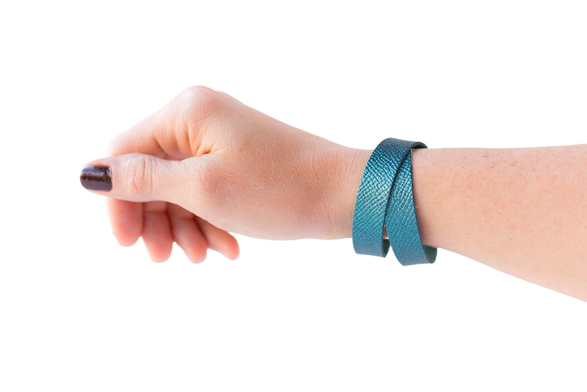 Leather Bracelet / Slim Wrap Cuff / Teal Quartz Shimmer