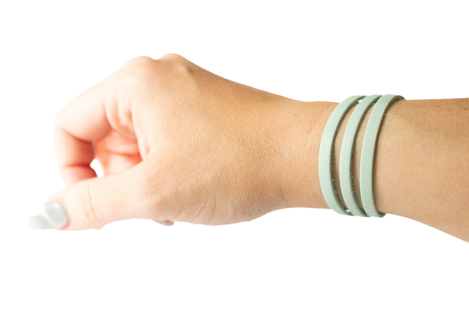 Leather Bracelet / Ultra Skinny Sliced Cuff / Cool Mint