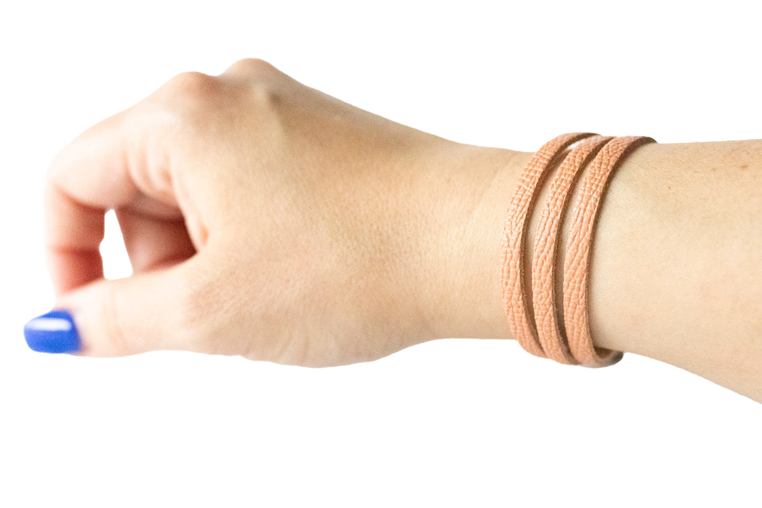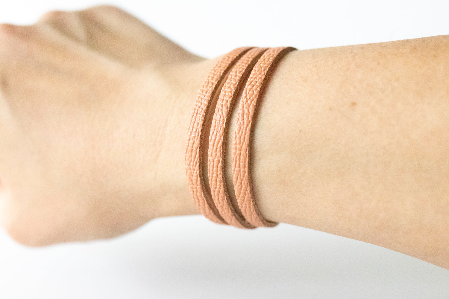 Leather Bracelet / Ultra Skinny Sliced Cuff / Coral Sands