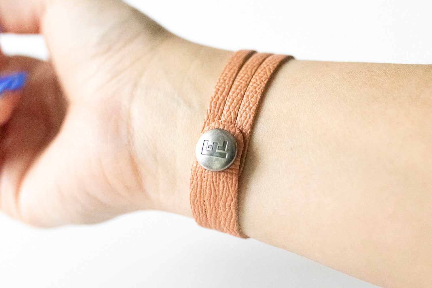 These bracelets will come with a brushed silver FL (Flourish Leather) logo snap.