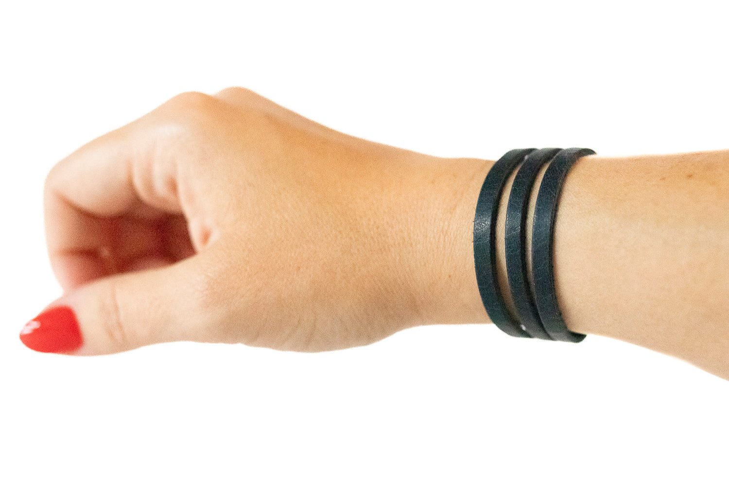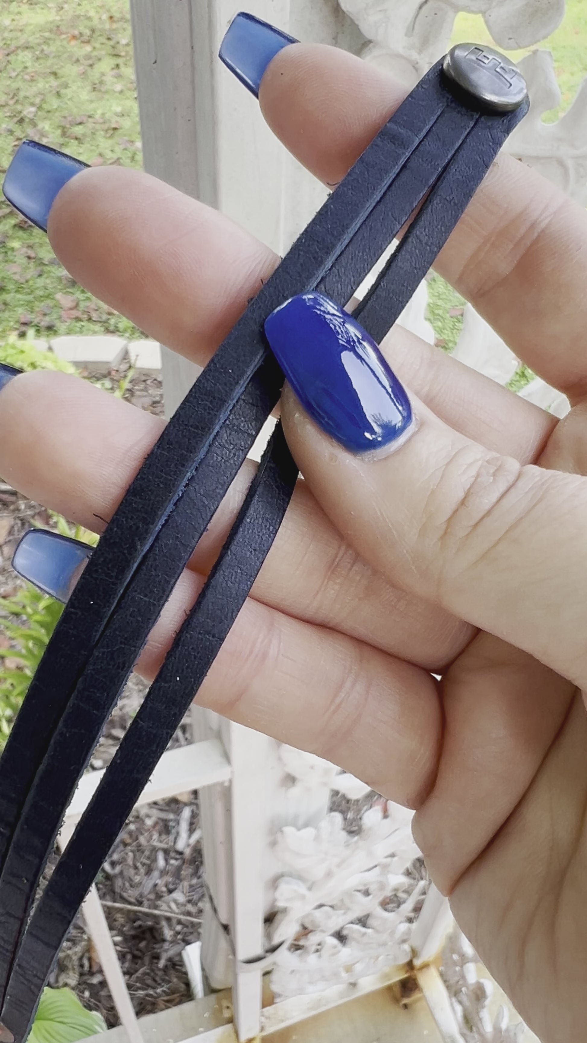 Leather Bracelet / Ultra Skinny Sliced Cuff / Dark Navy