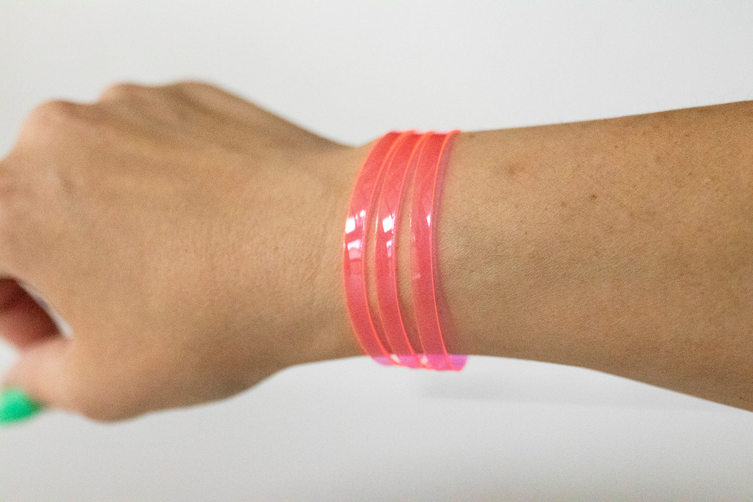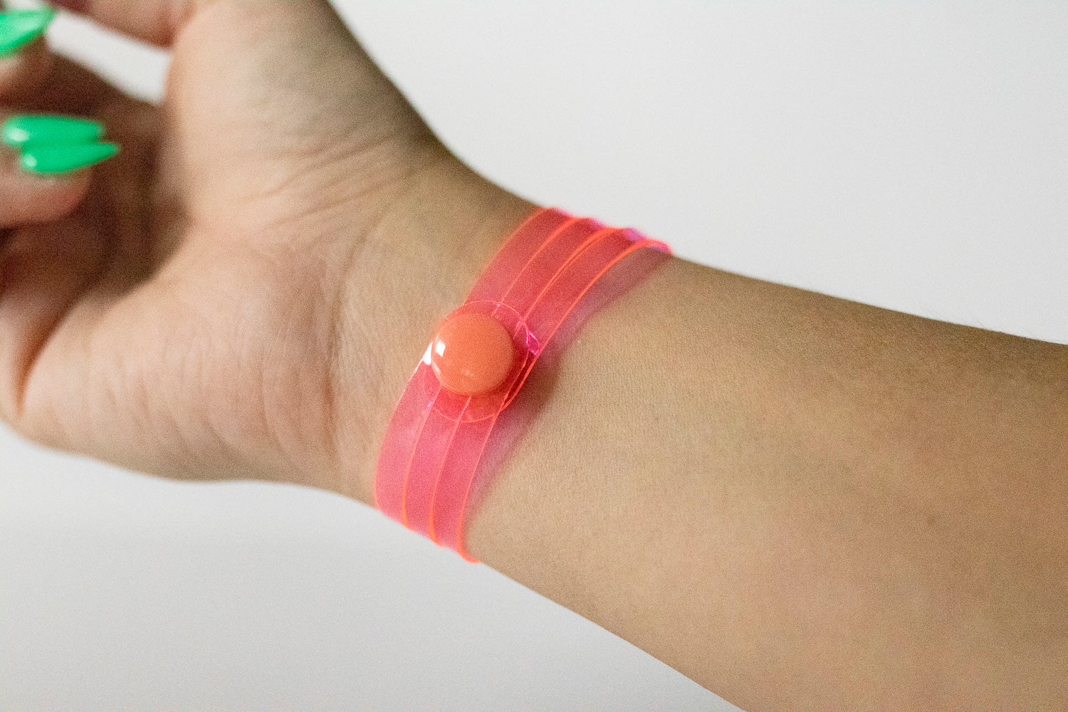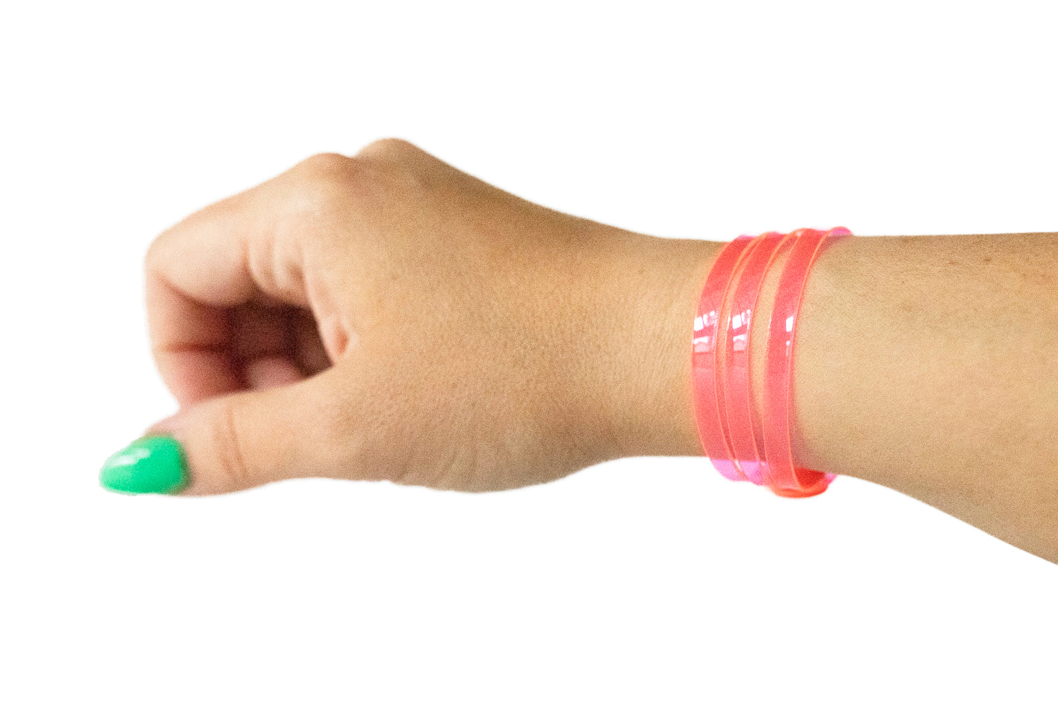 This stylish ultra-skinny sliced cuff bracelet brings a fashionable edge to your stack. Crafted from high-quality jelly vinyl, it's slim design adds a subtle nuance to your everyday look. Enjoy a cute and versatile bracelet without compromising comfort or quality.