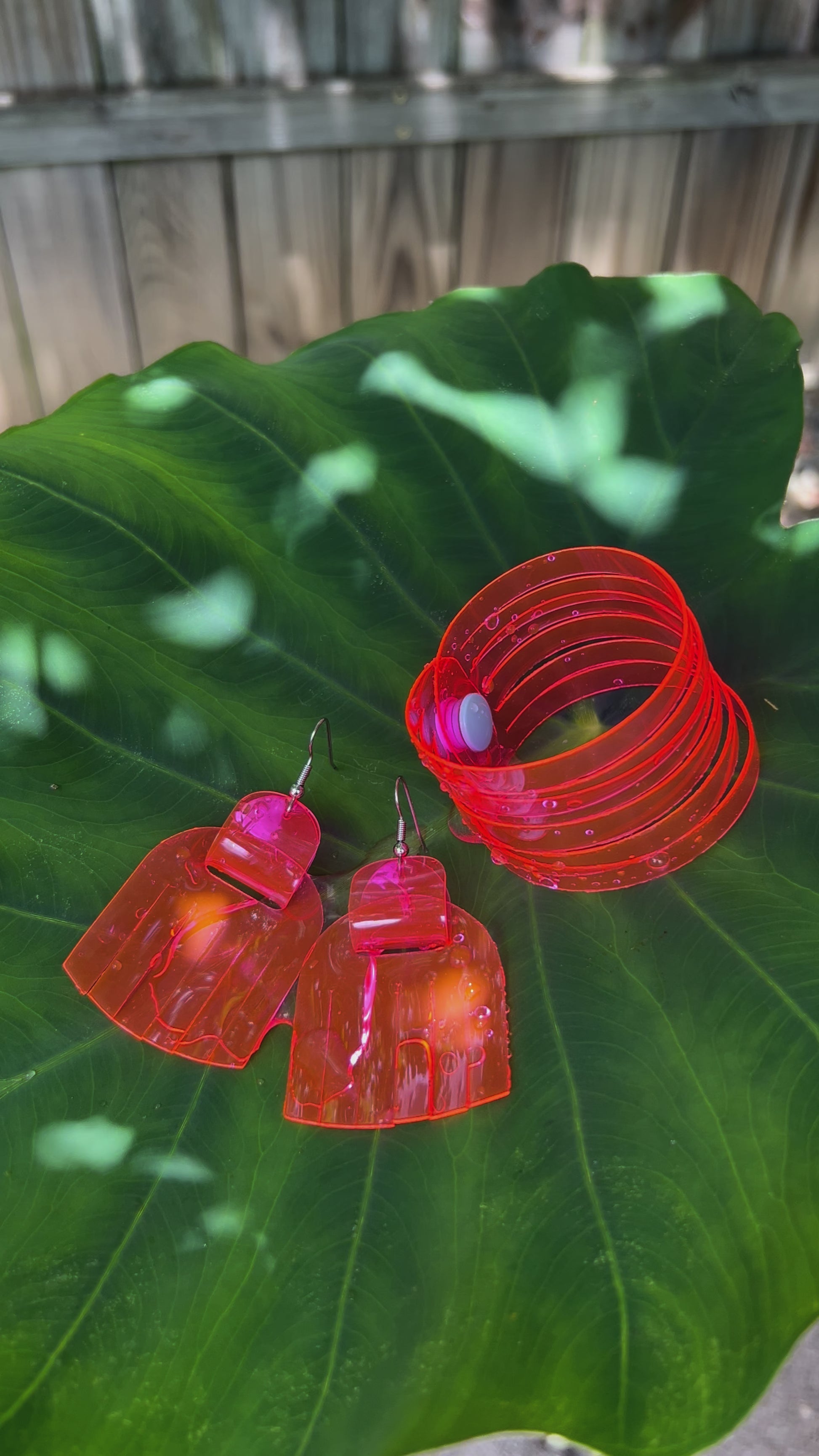Leather Bracelet / Ultra Skinny Sliced Cuff / Dragon Fruit Jelly
