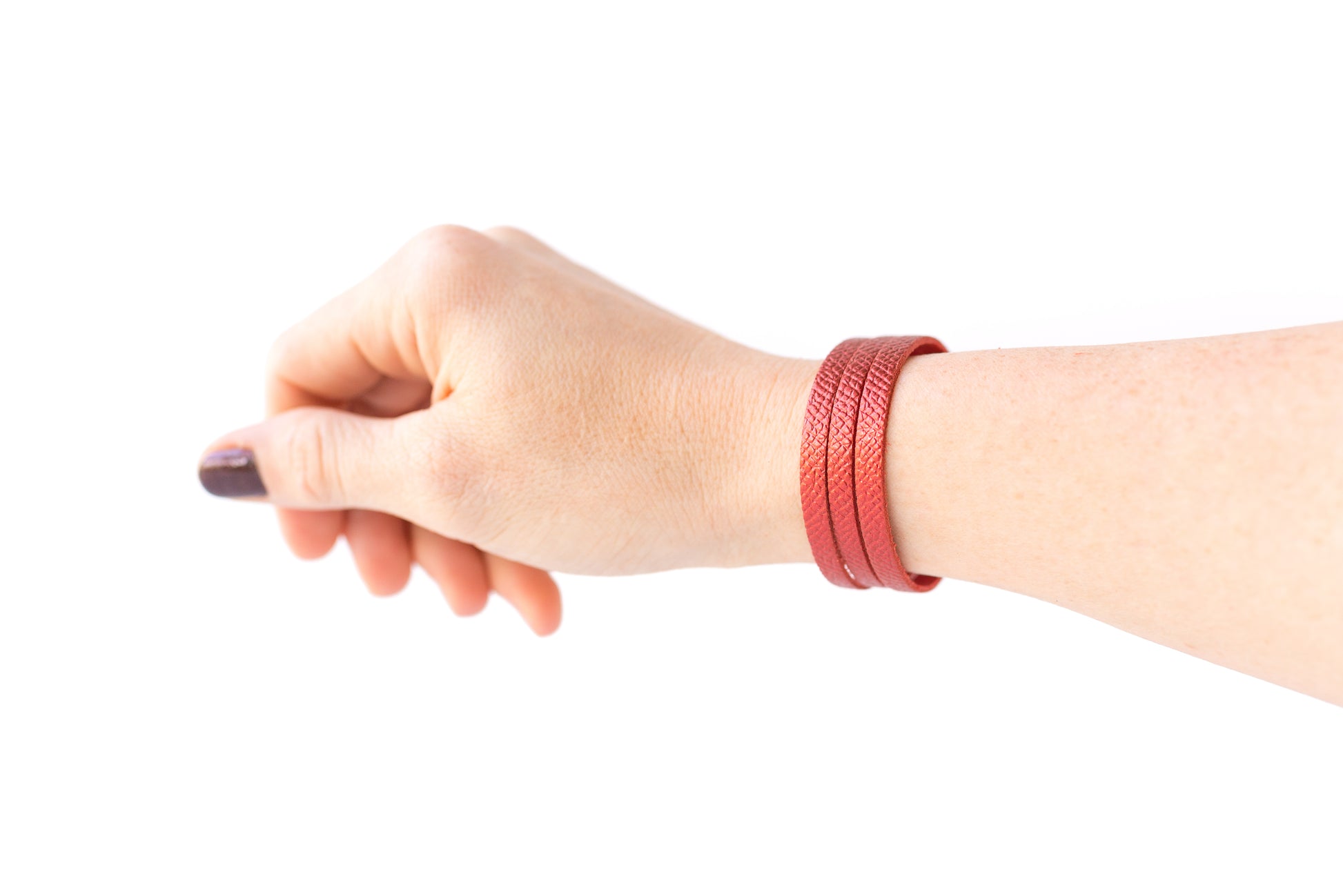Leather Bracelet / Ultra Skinny Sliced Cuff / Fire Opal Shimmer