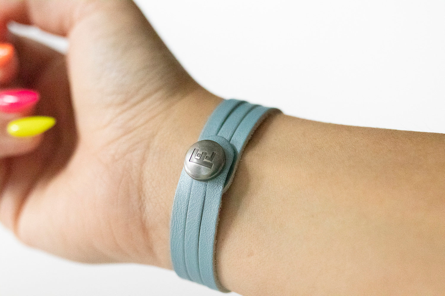 These bracelets will come with a brushed silver FL (Flourish Leather) logo snap.