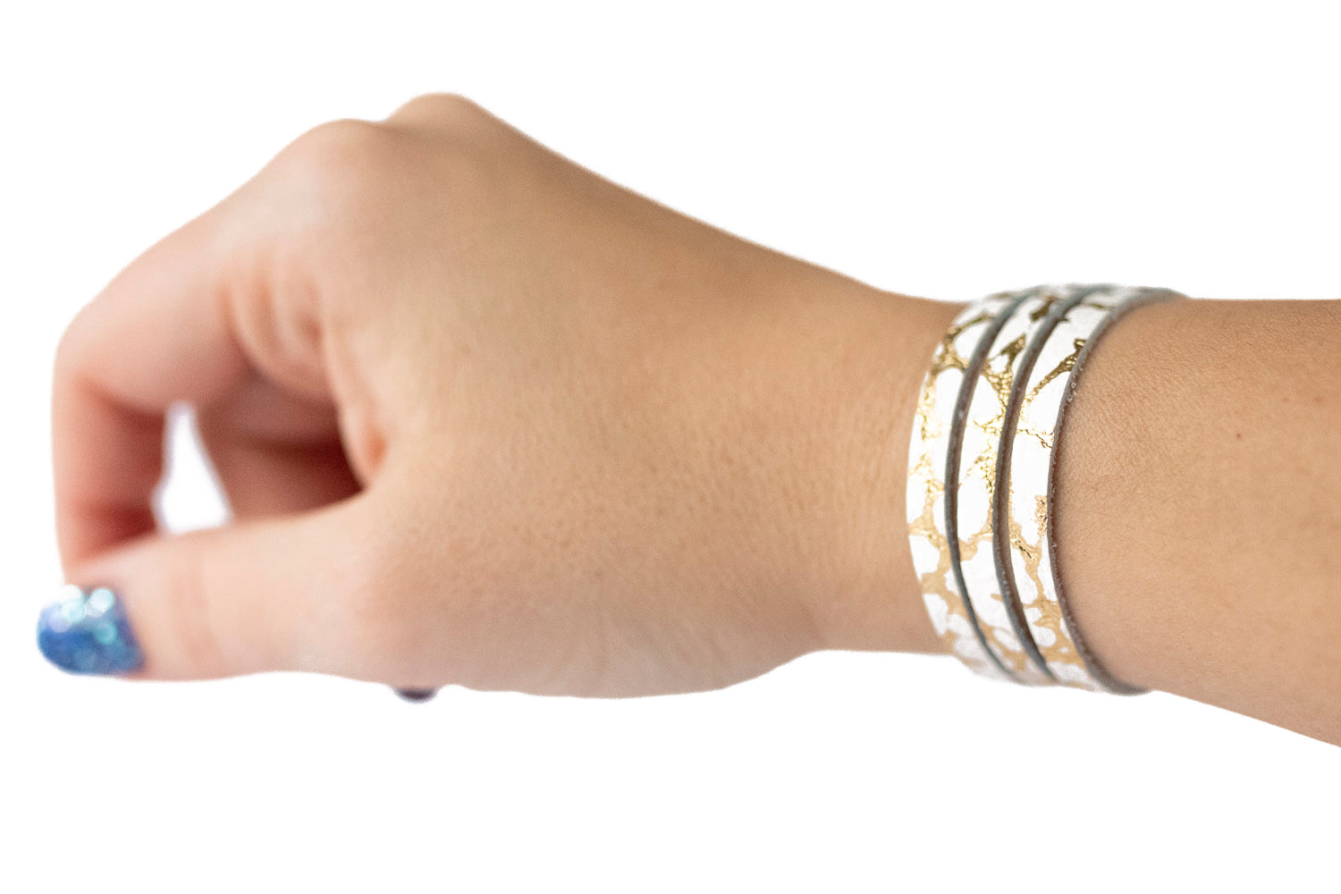 Leather Bracelet / Ultra Skinny Sliced Cuff / Gold Marble