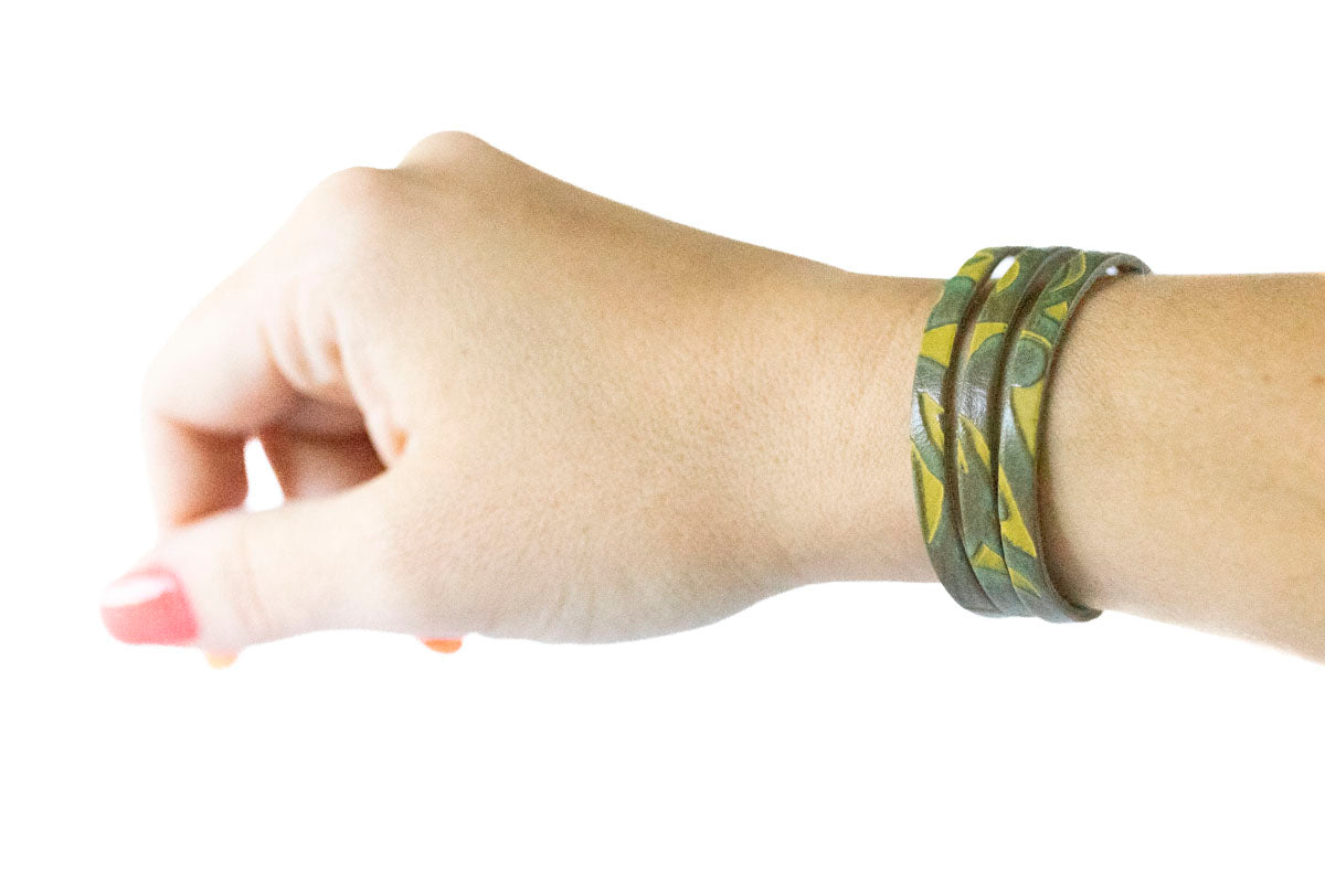 Leather Bracelet / Ultra Skinny Sliced Cuff / Jungle Floor