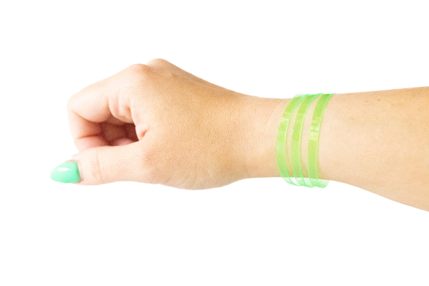 This stylish ultra-skinny sliced cuff bracelet brings a fashionable edge to your stack. Crafted from high-quality jelly vinyl, it's slim design adds a subtle nuance to your everyday look. Enjoy a cute and versatile bracelet without compromising comfort or quality.