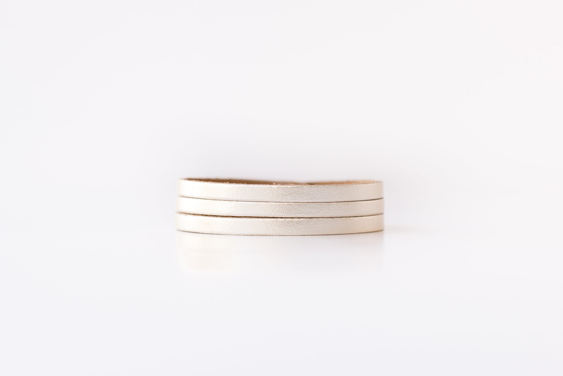 Leather Bracelet / Ultra Skinny Sliced Cuff / Metallic Platinum