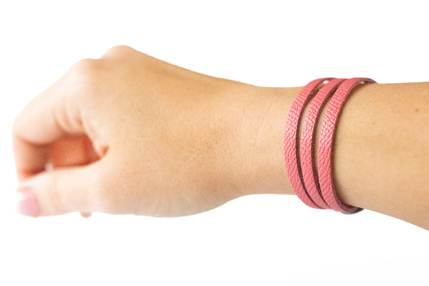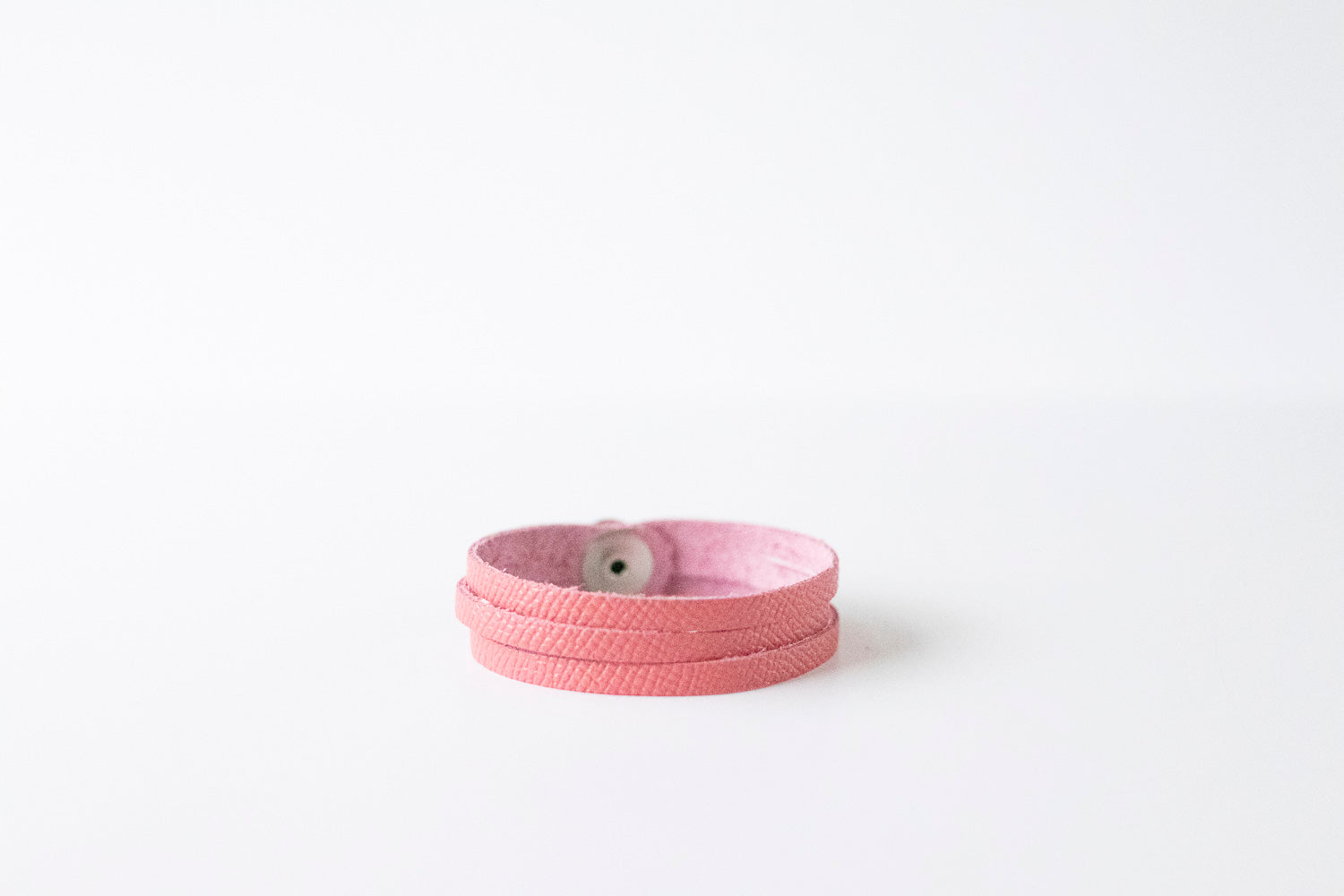 Leather Bracelet / Ultra Skinny Sliced Cuff / Pink Cherries