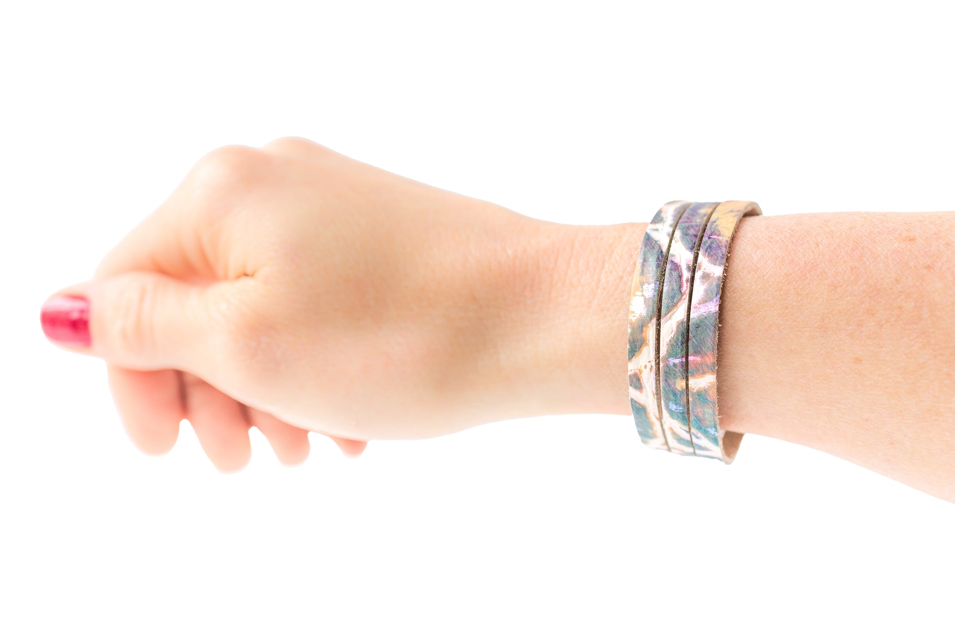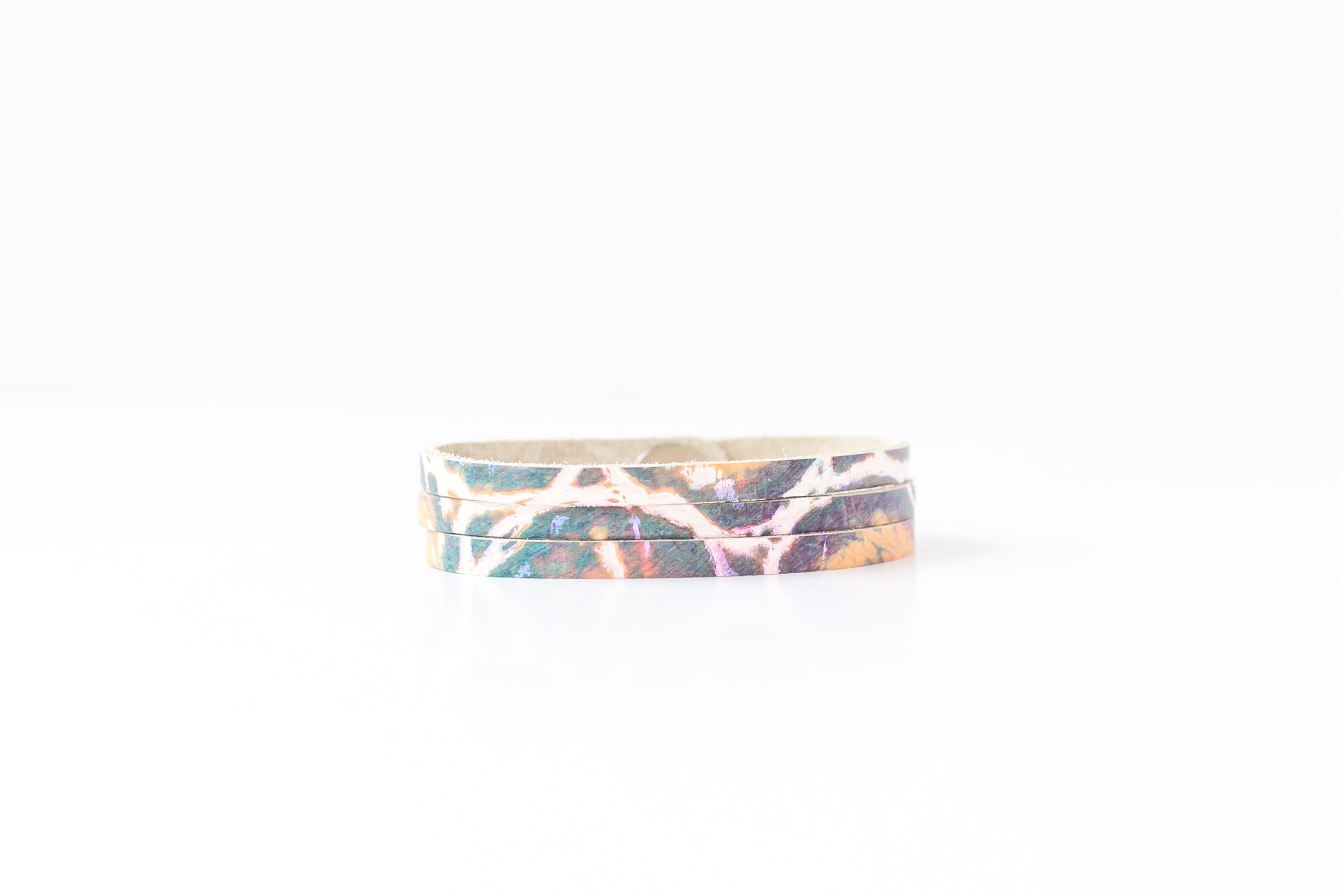 Leather Bracelet / Ultra Skinny Sliced Cuff / Prism Reptile