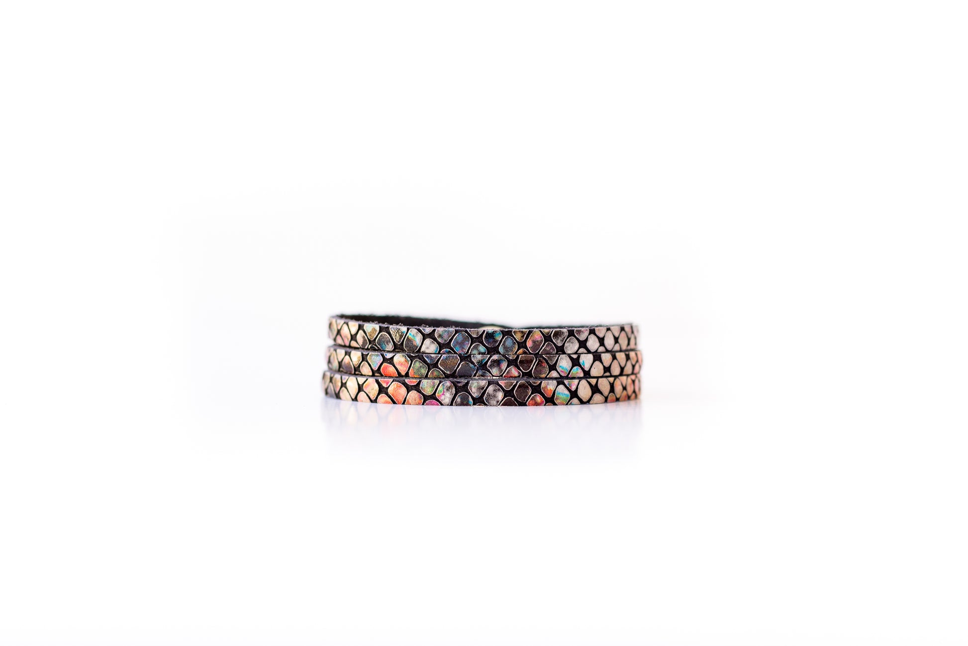 Leather Bracelet / Ultra Skinny Sliced Cuff / Prism Snake