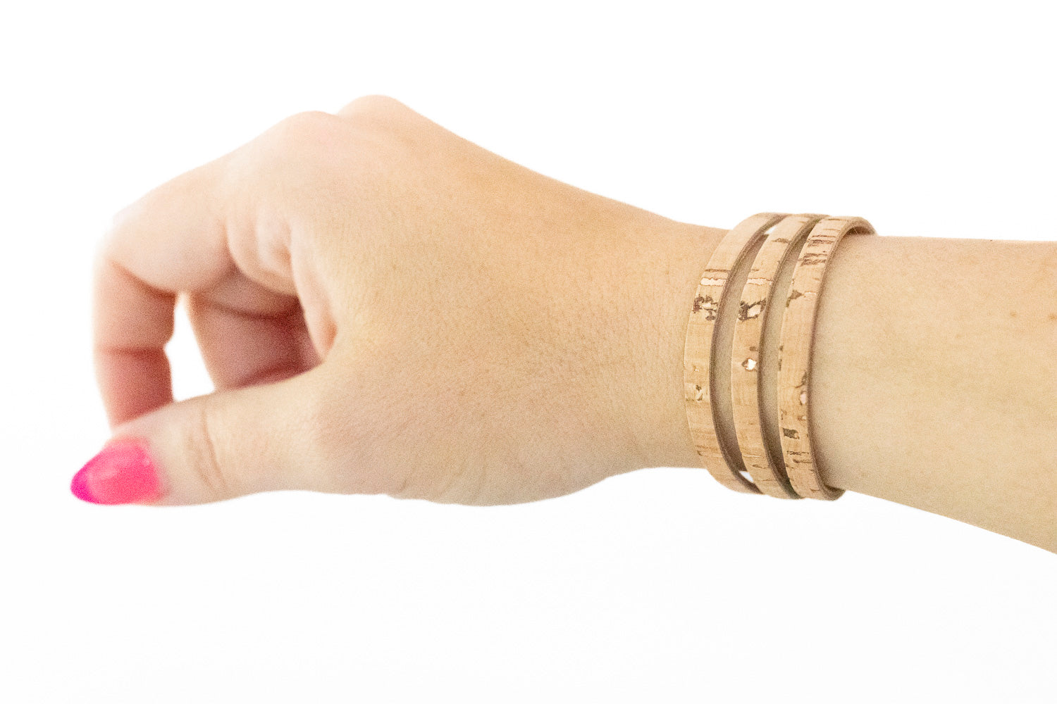 Leather Bracelet / Ultra Skinny Sliced Cuff / Rosegold Cork