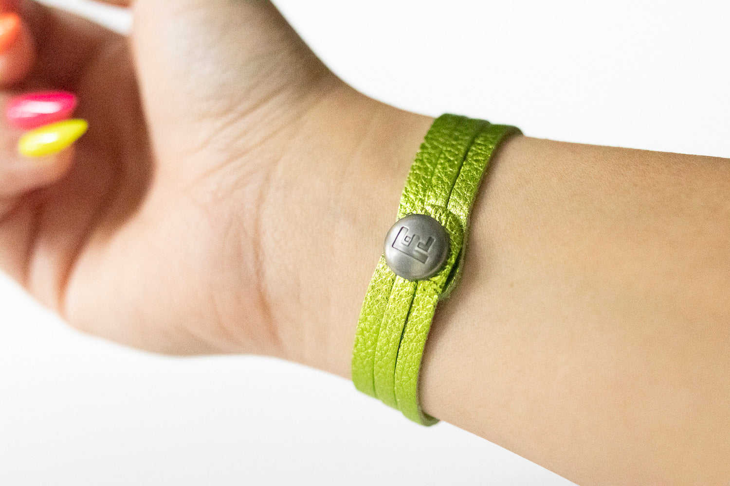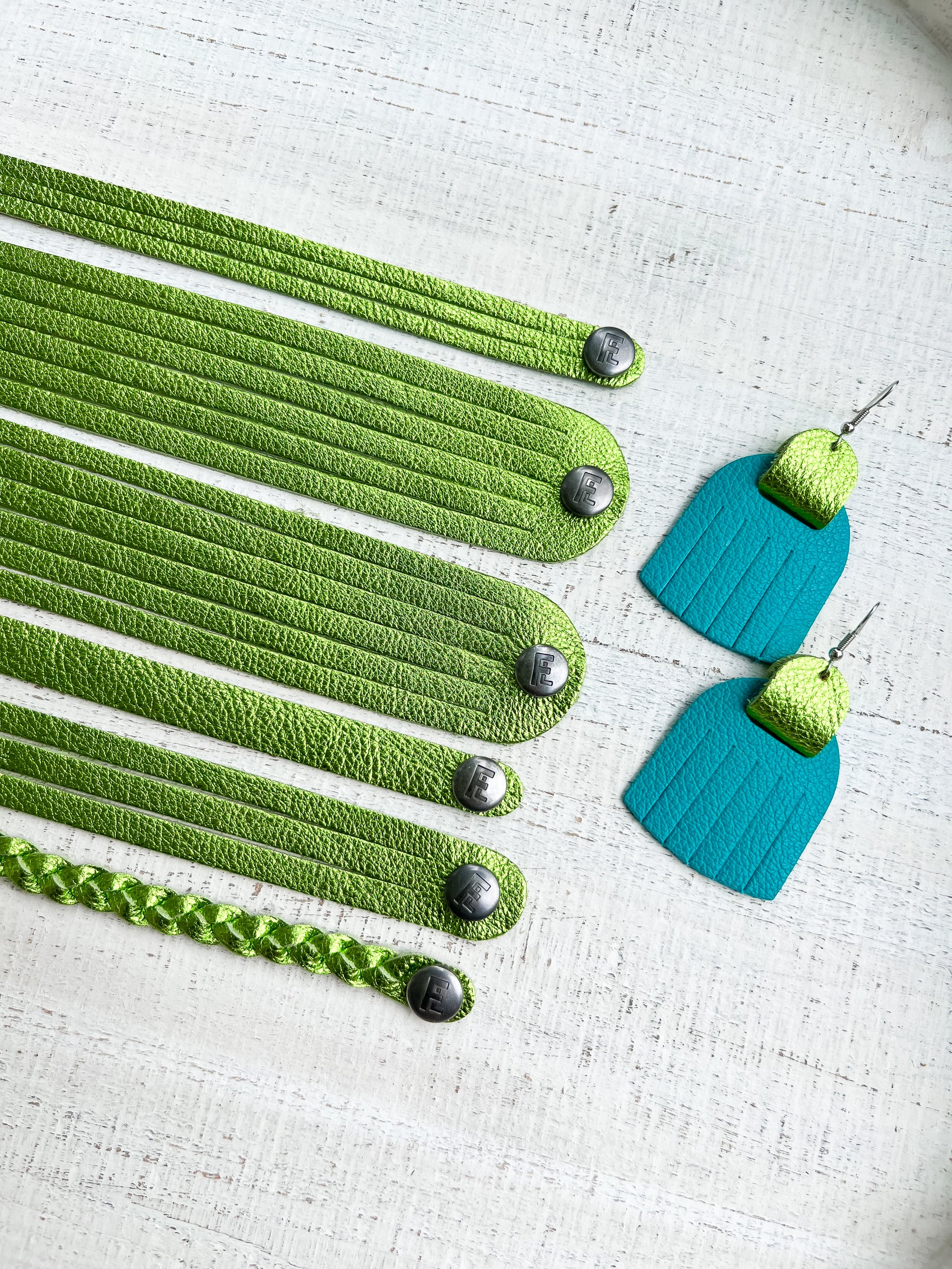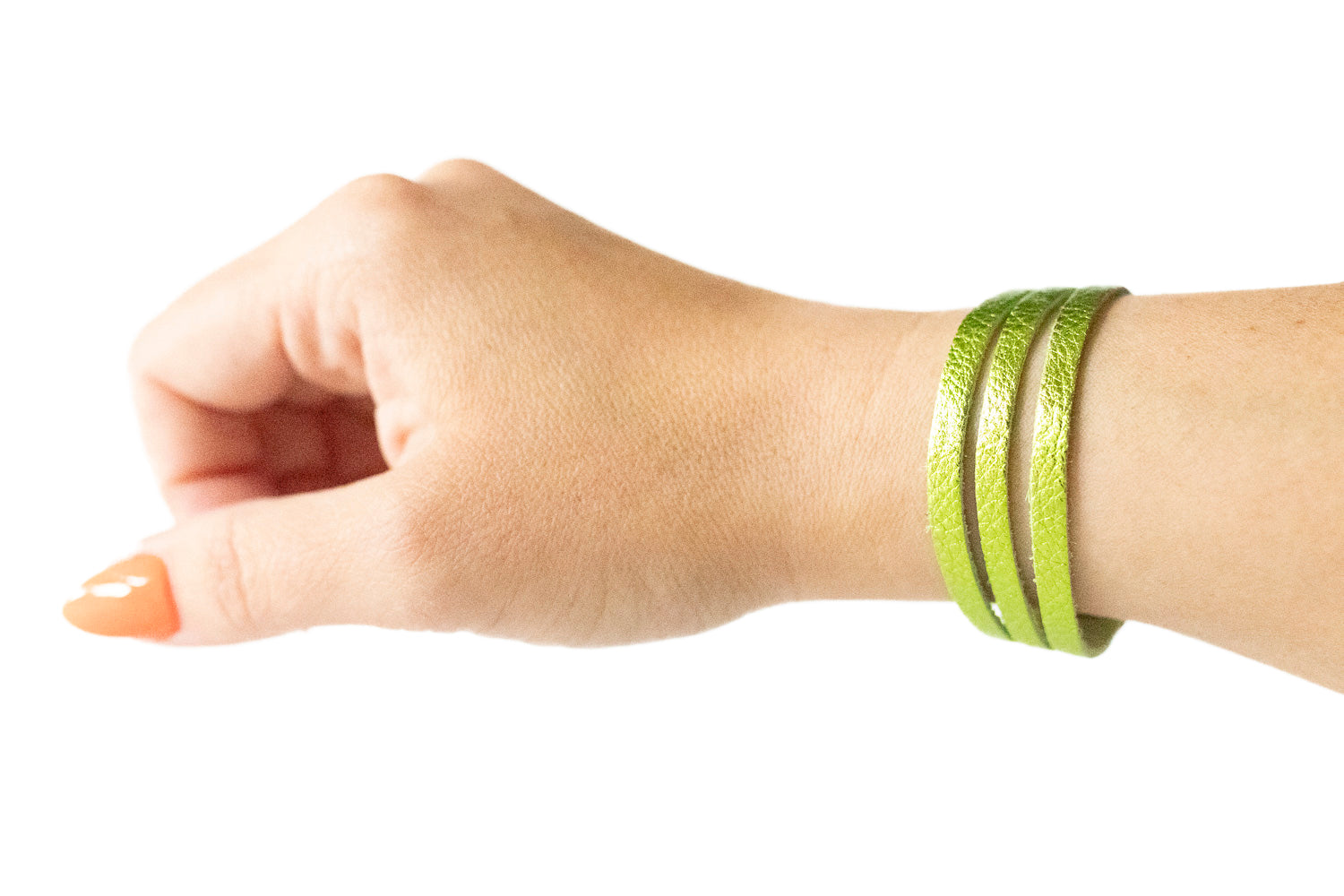 Leather Bracelet / Ultra Skinny Sliced Cuff / Soft Lime