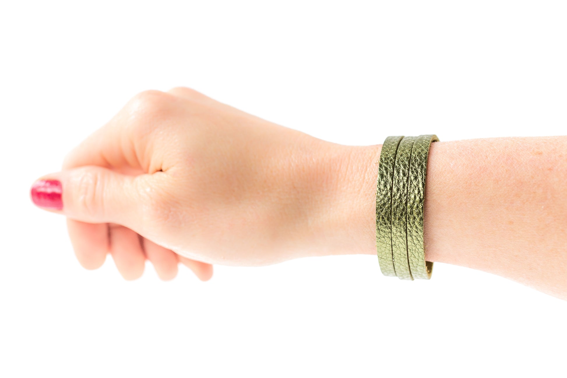 Leather Bracelet / Ultra Skinny Sliced Cuff / Soft Olive