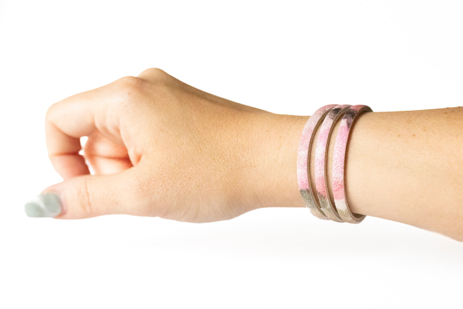 Leather Bracelet / Ultra Skinny Sliced Cuff / Sparkle Sky