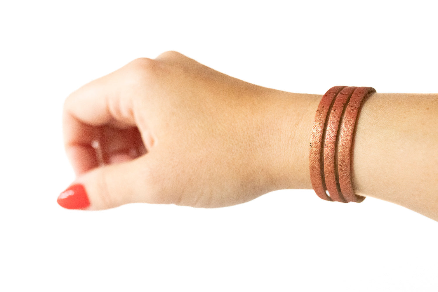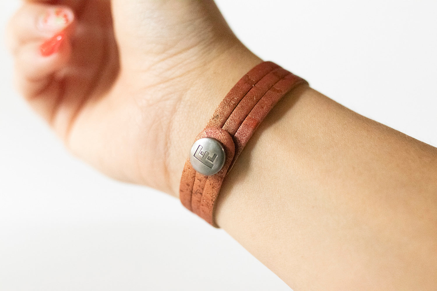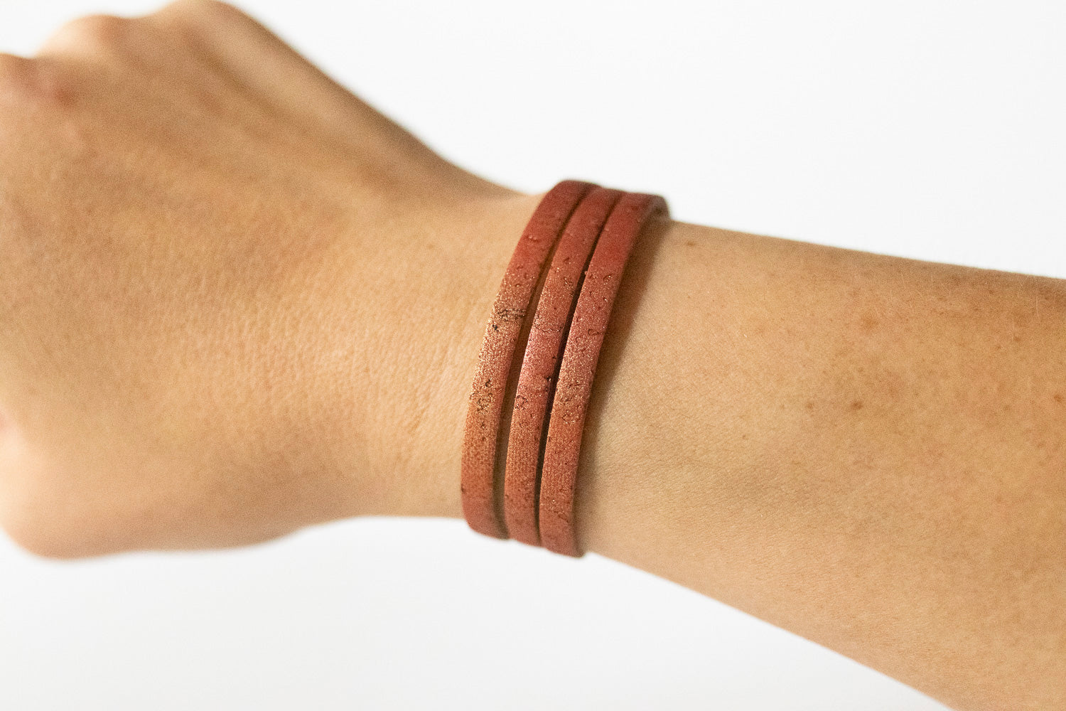 Leather Bracelet / Ultra Skinny Sliced Cuff / Spiced Cider Cork
