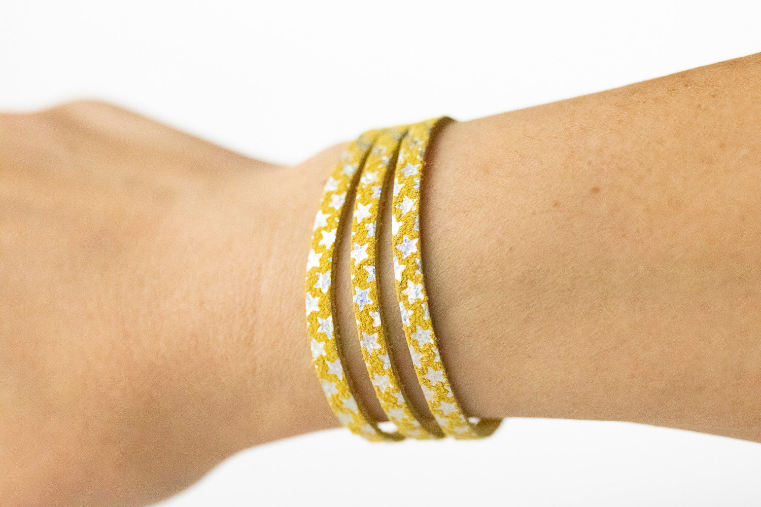 Leather Bracelet / Ultra Skinny Sliced Cuff / Summer Stars