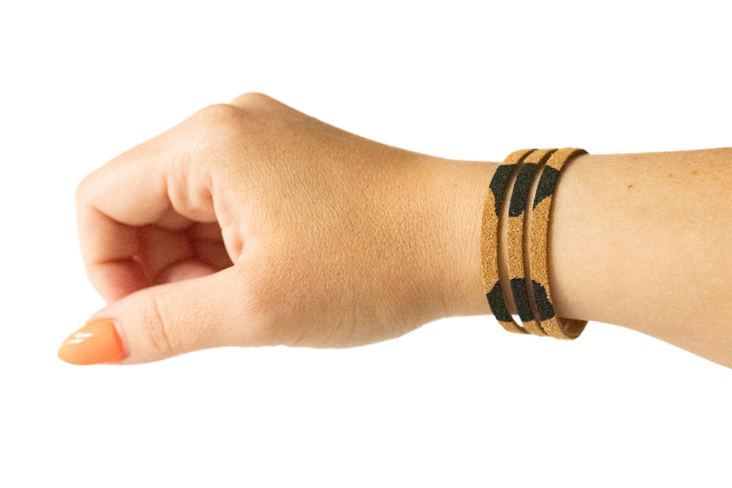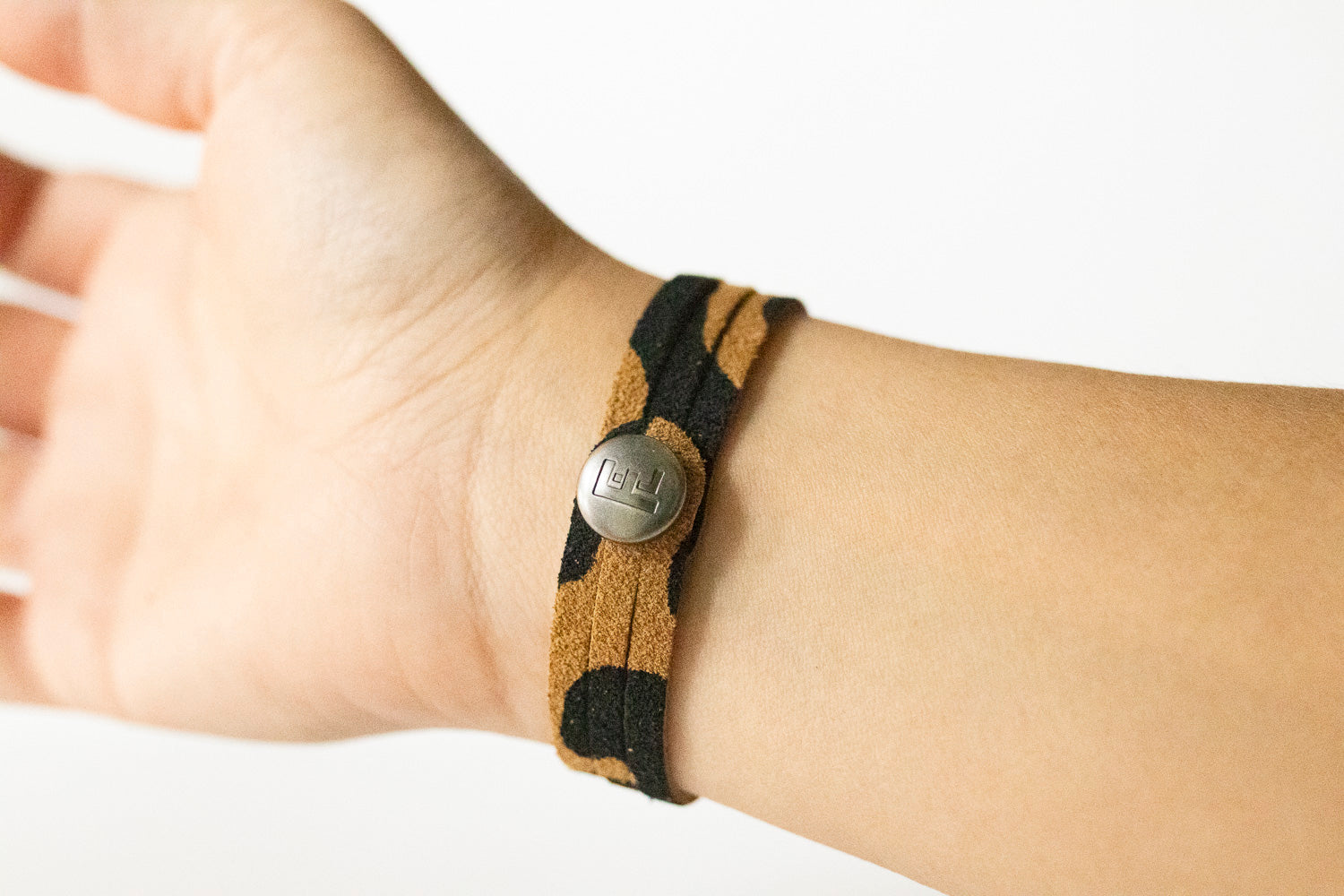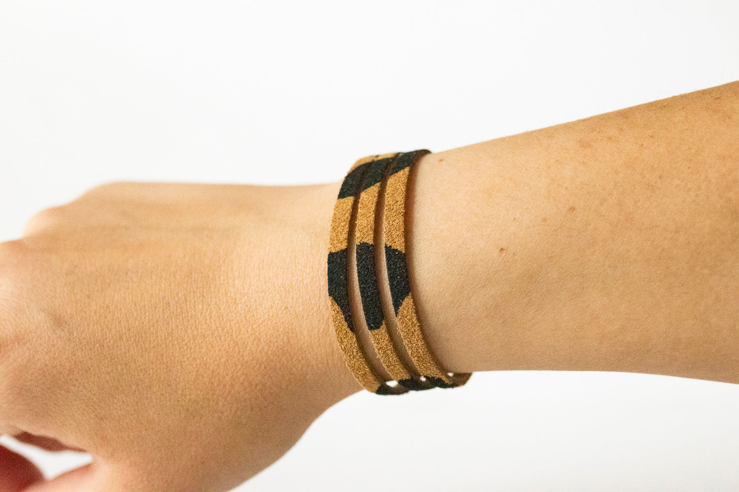 Leather Bracelet / Ultra Skinny Sliced Cuff / Tan Leopard Suede