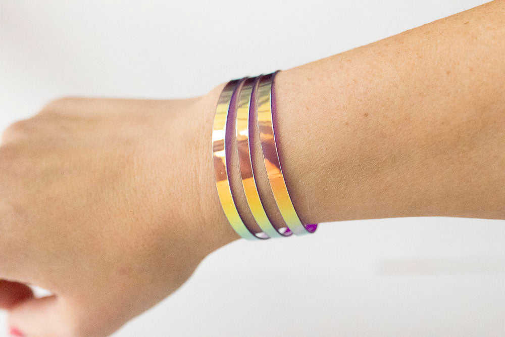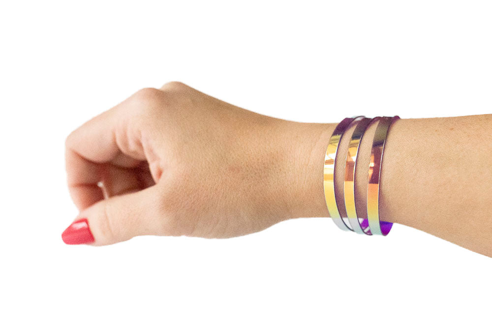 This stylish ultra-skinny sliced cuff bracelet brings a fashionable edge to your stack. Crafted from high-quality jelly vinyl, it's slim design adds a subtle nuance to your everyday look. Enjoy a cute and versatile bracelet without compromising comfort or quality.