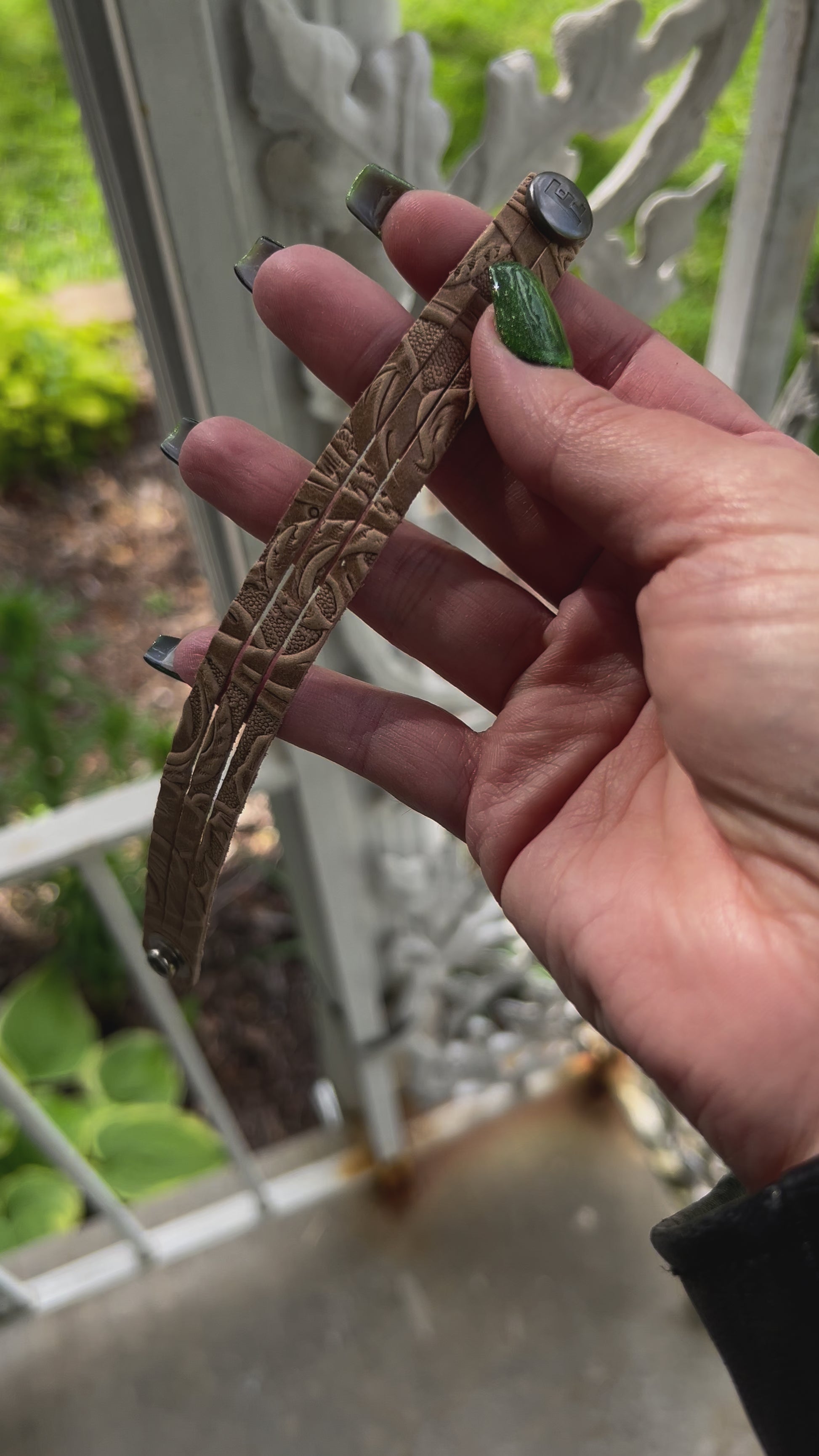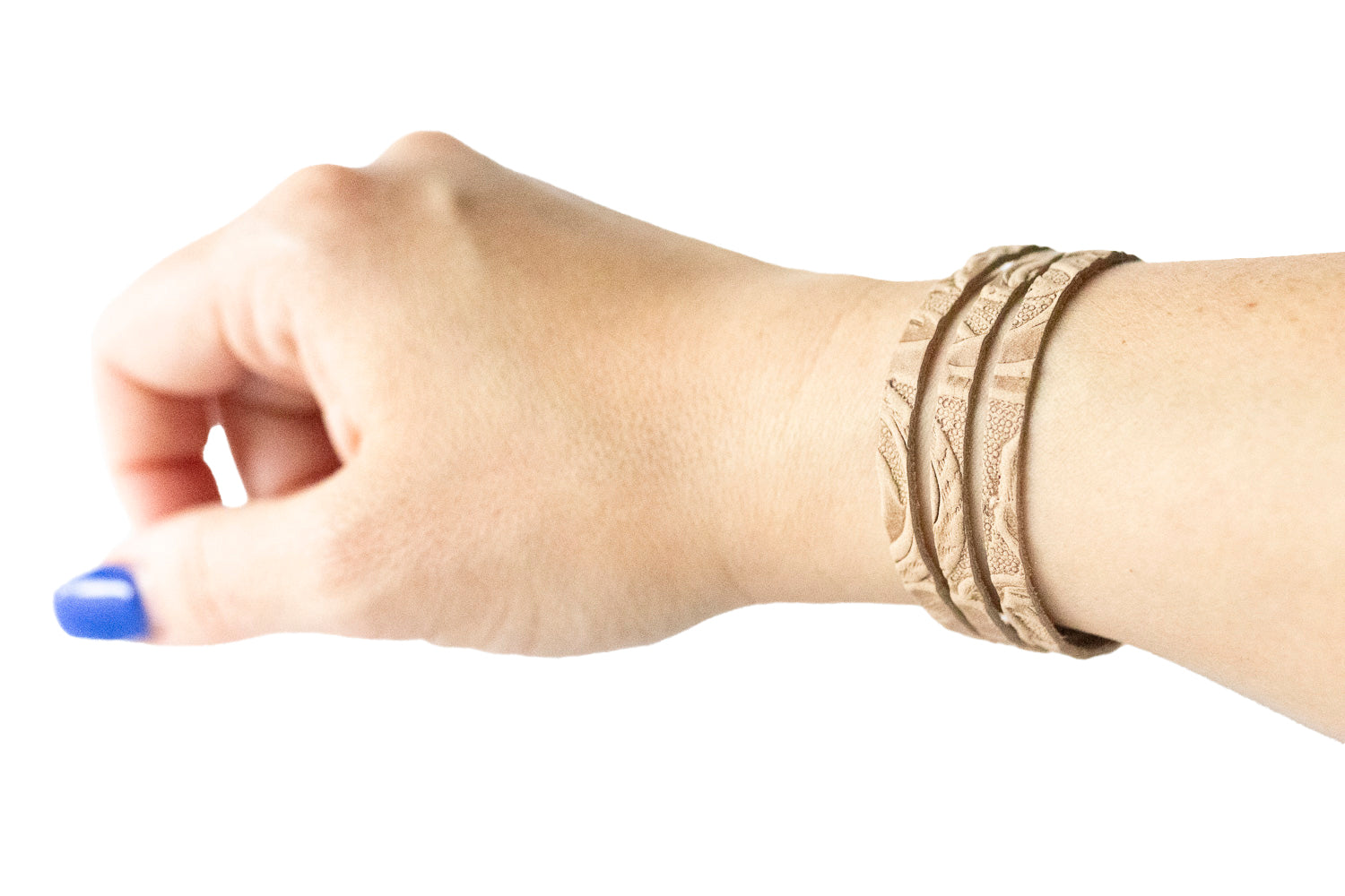 Leather Bracelet / Ultra Skinny Sliced Cuff / Western Floral