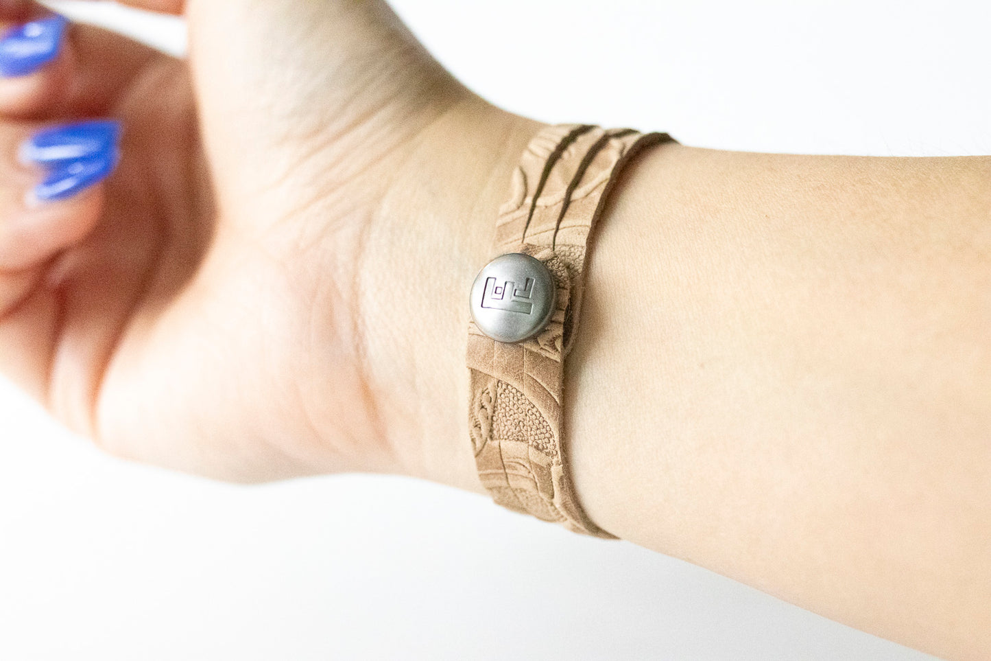 These bracelets will come with a brushed silver FL (Flourish Leather) logo snap.