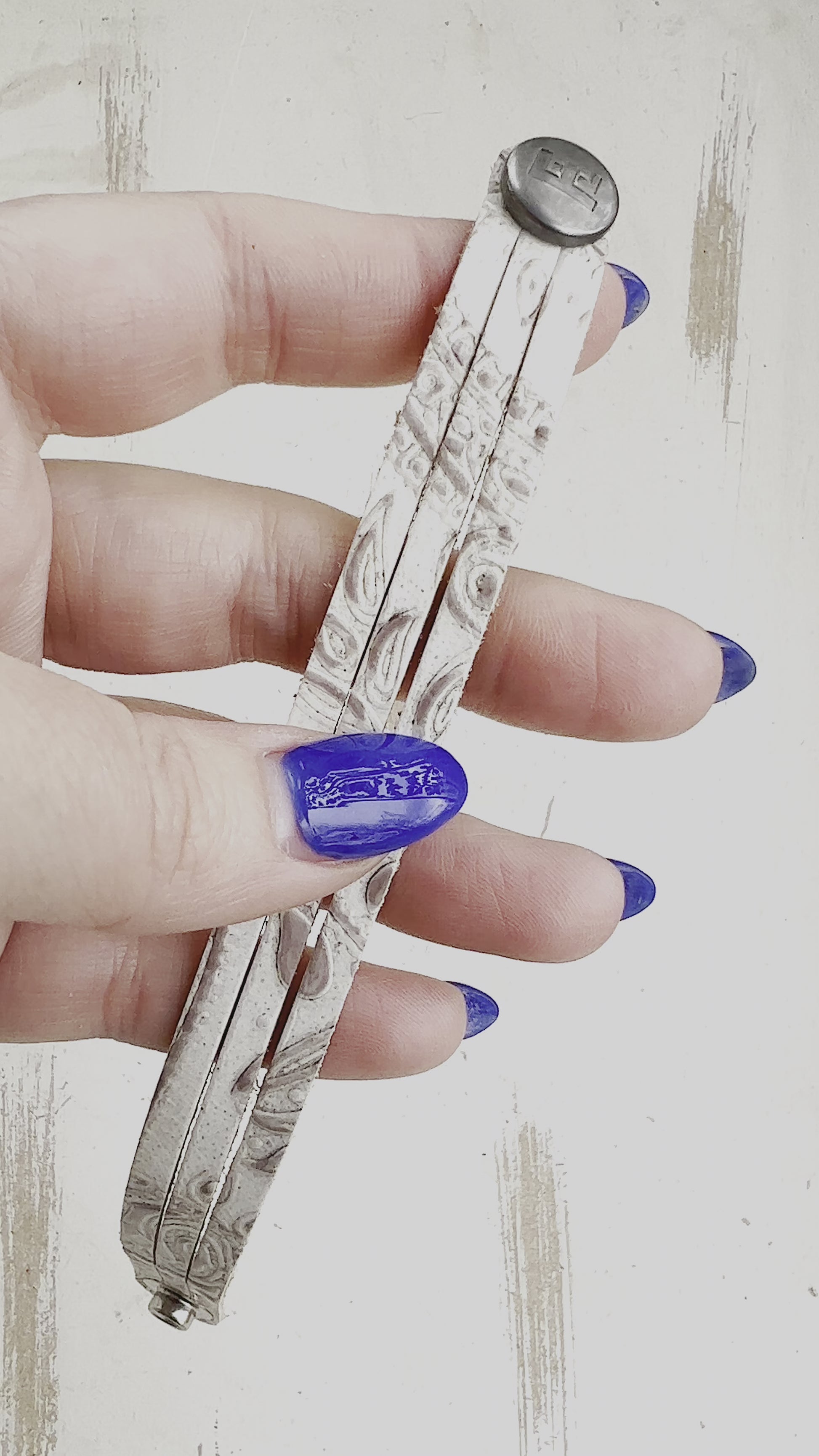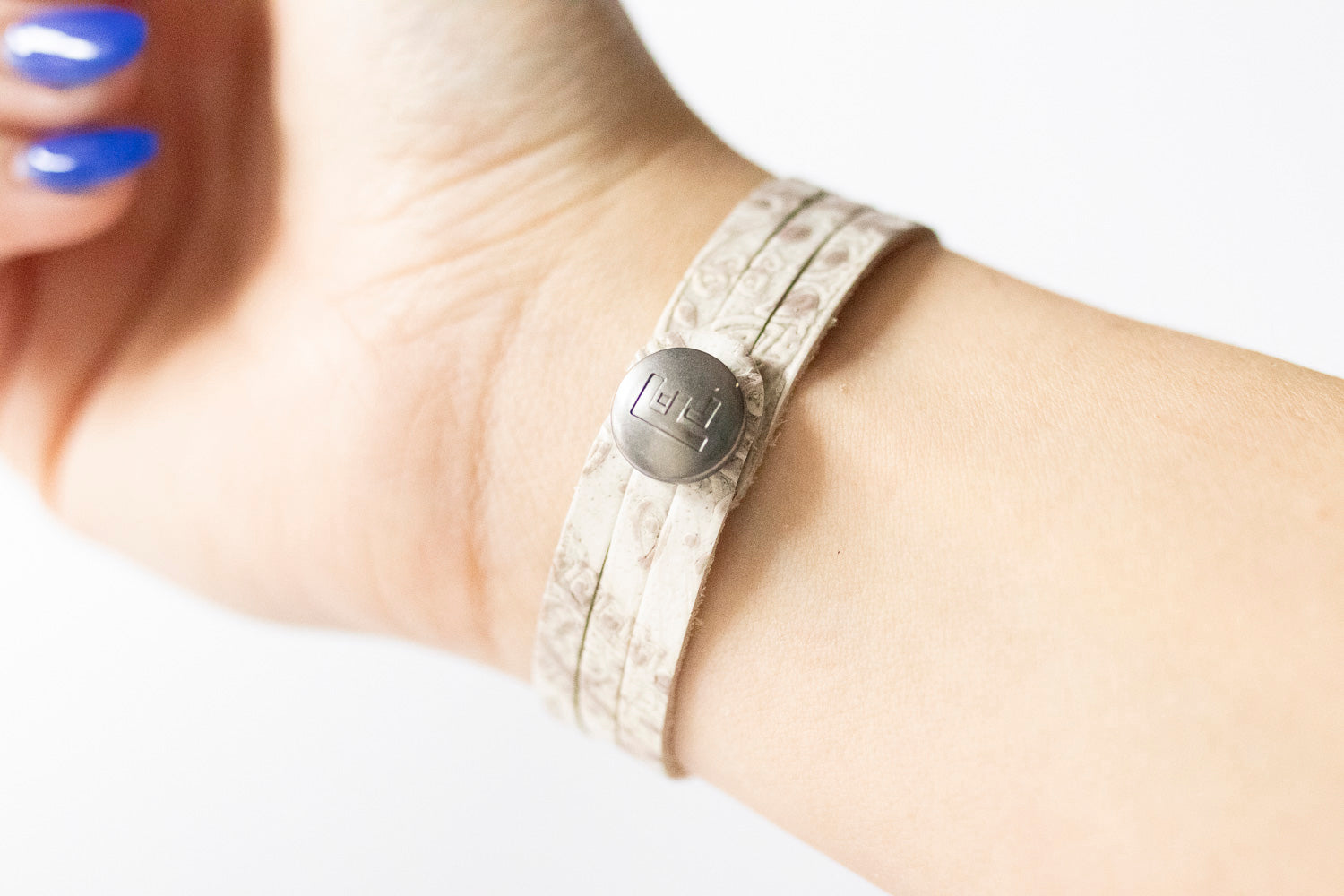 These bracelets will come with a brushed silver FL (Flourish Leather) logo snap.