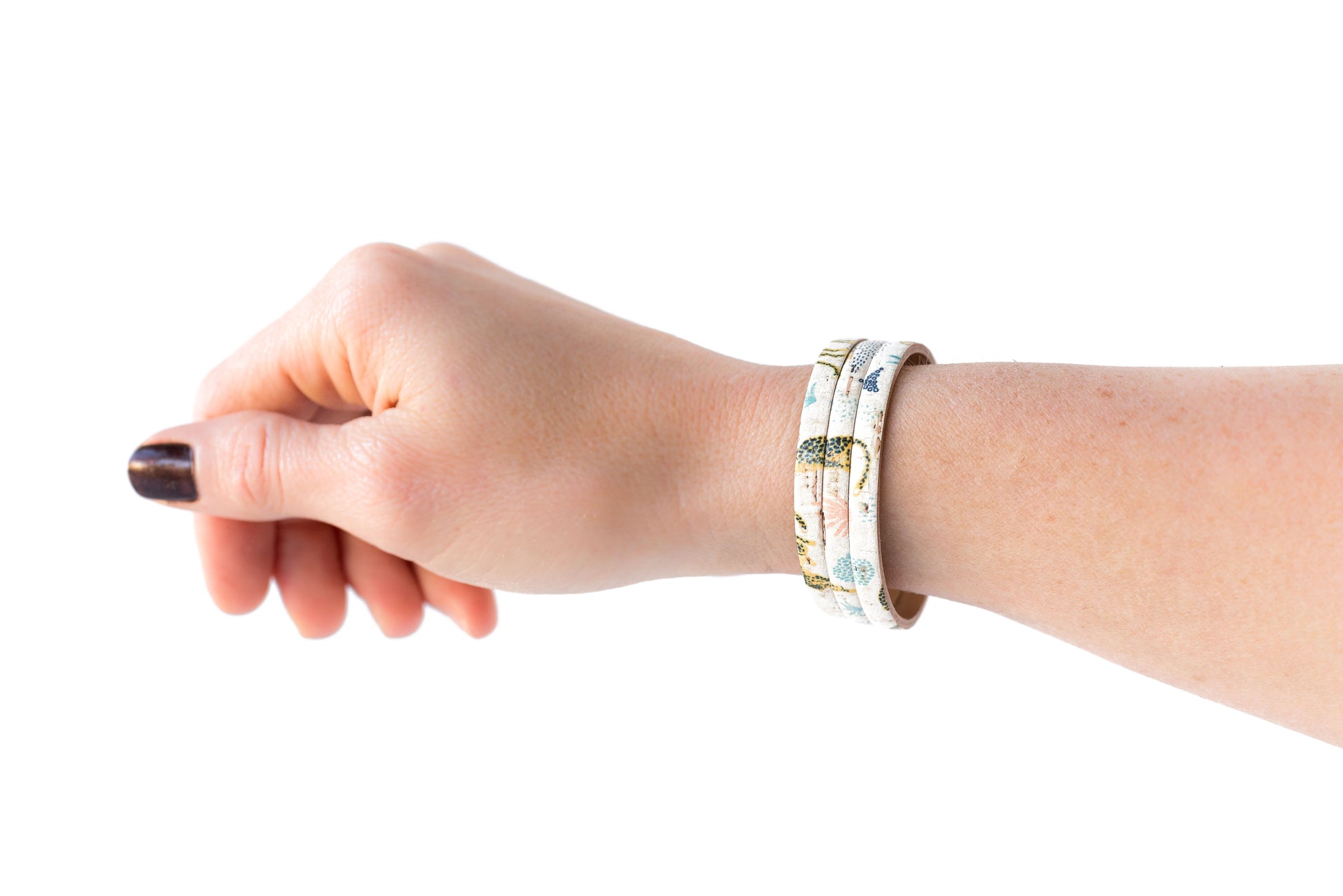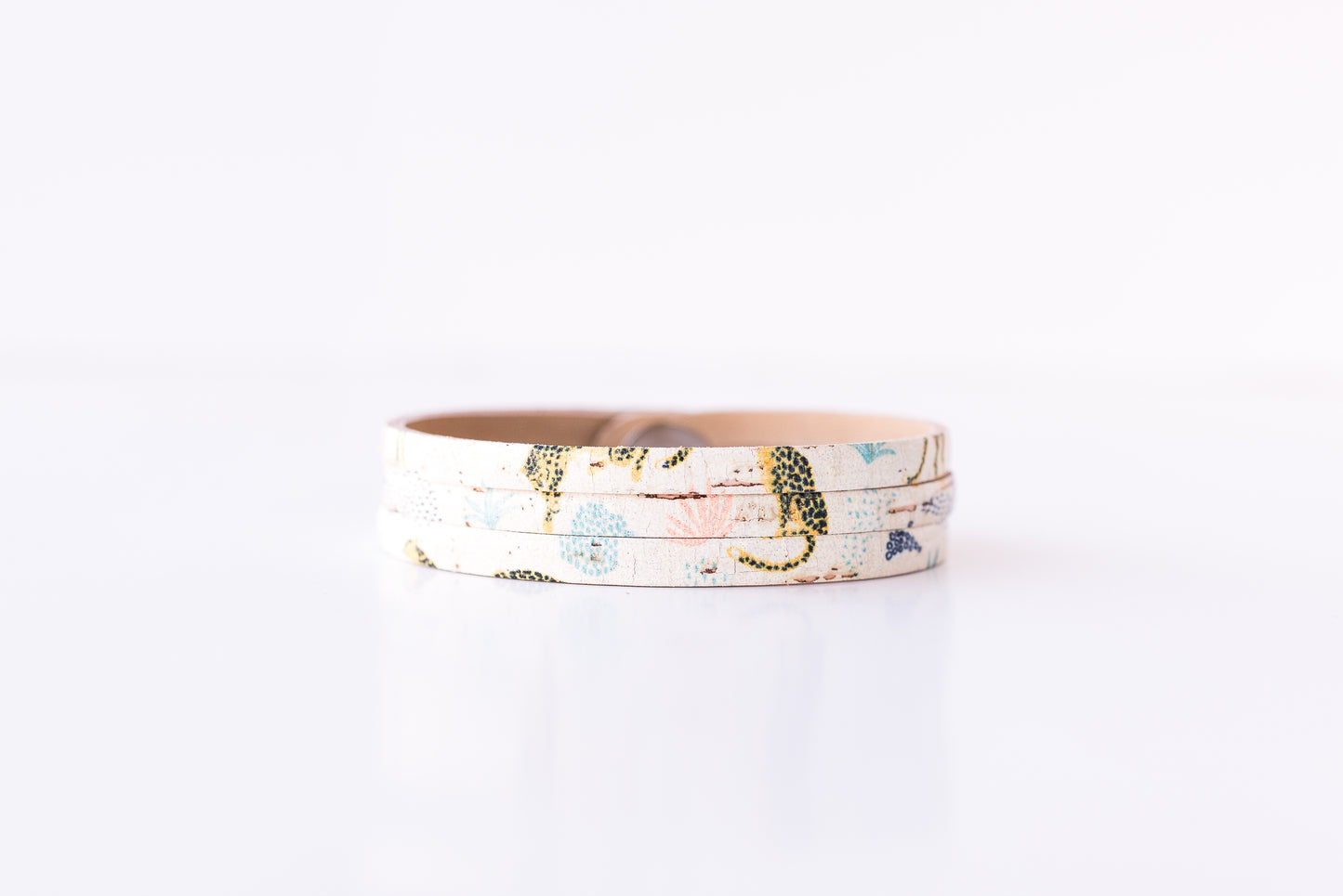 Leather Bracelet / Ultra Skinny Sliced Cuff / Wild Cheetah Cork