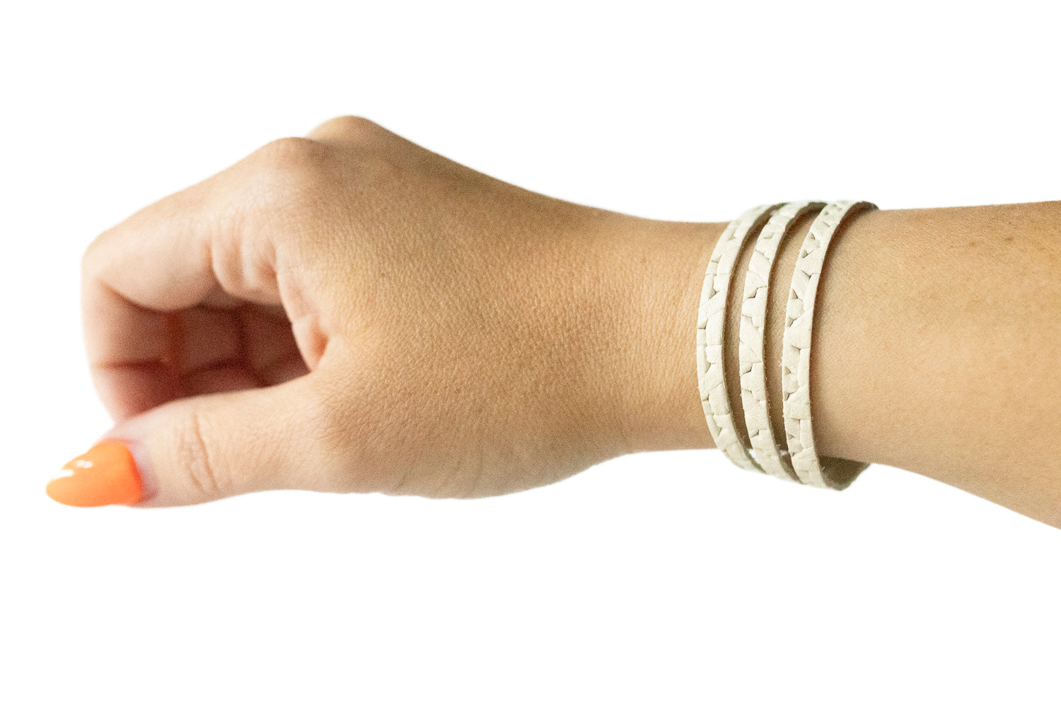 Leather Bracelet / Ultra Skinny Sliced Cuff / Woven Chalk White