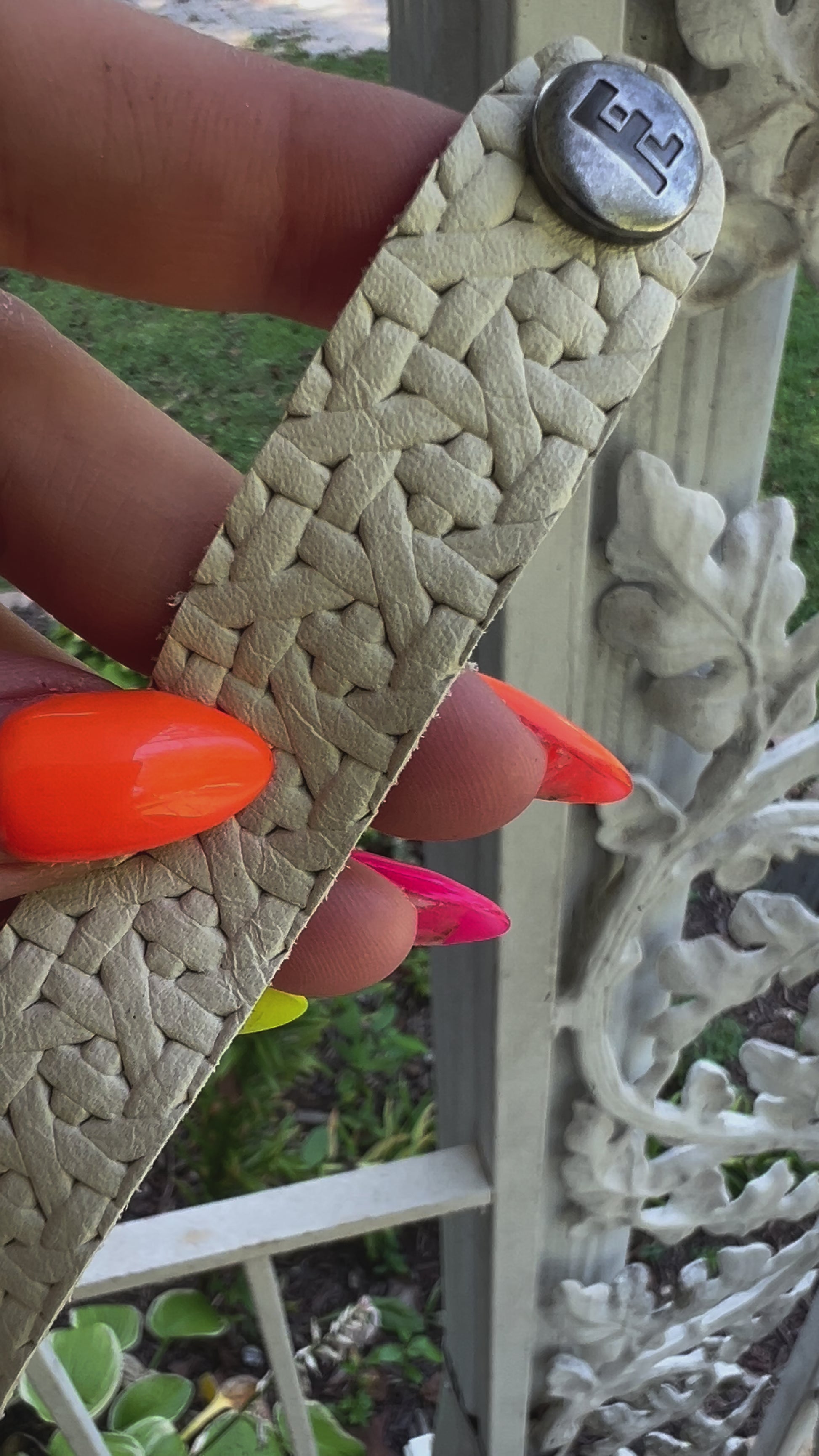 These bracelets will come with a brushed silver FL (Flourish Leather) logo snap.