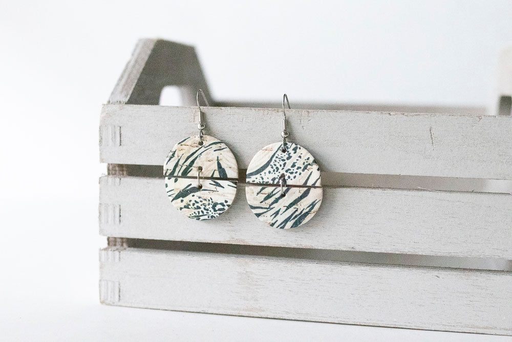 Leather Earrings / Cerchio / Safari Cafe Cork