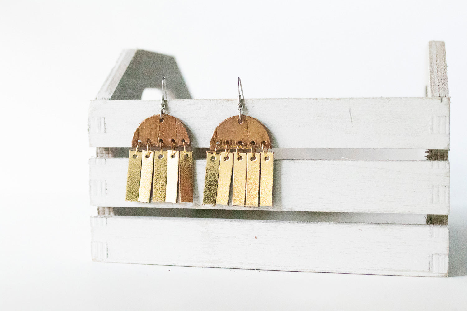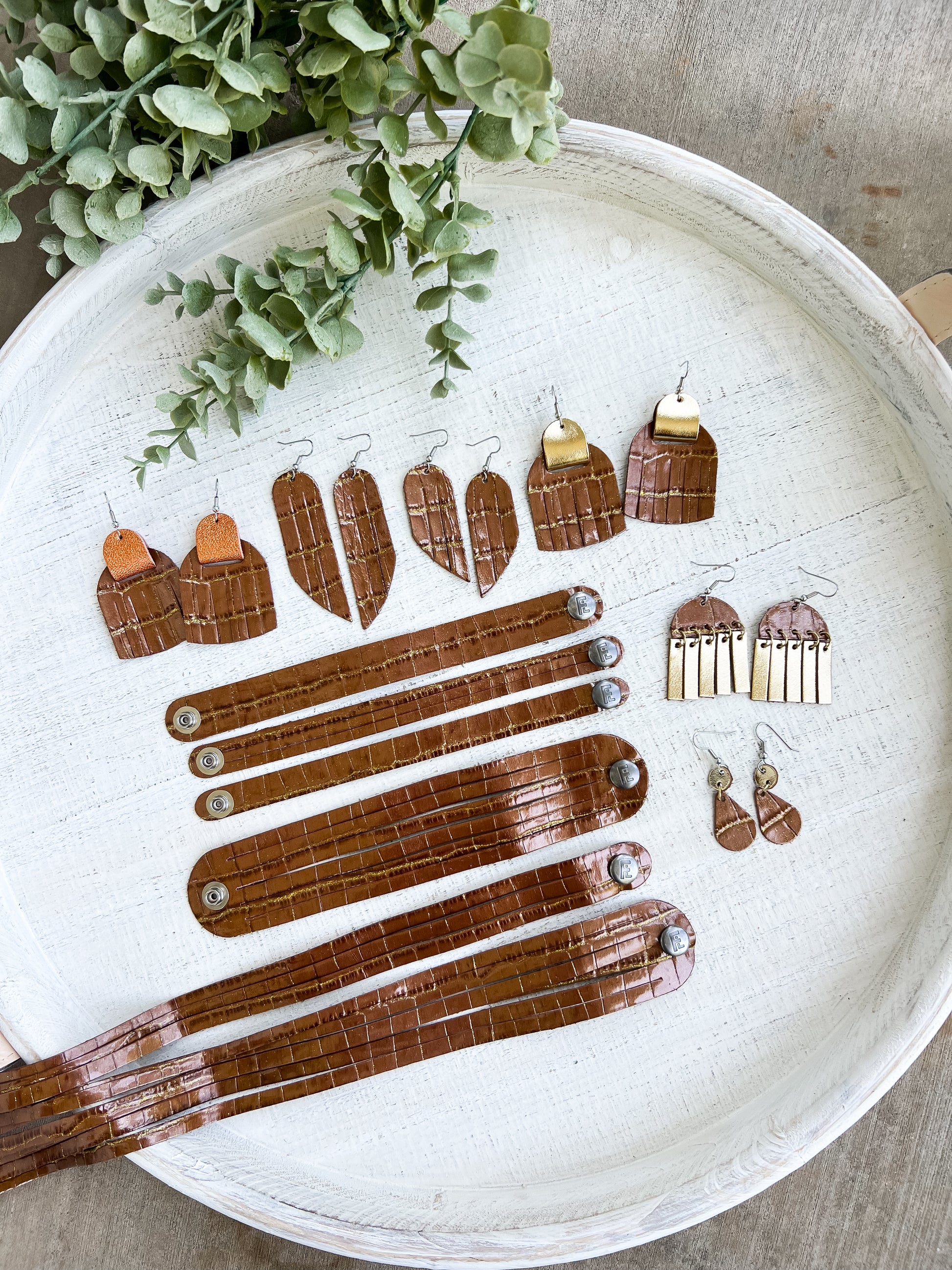 Cinque Luci, in Italian, means 5 lights! Just like a brilliant chandelier that catches your eye, these beautiful statement earrings are incredibly lightweight and pack a huge punch of leather style right on your ear!