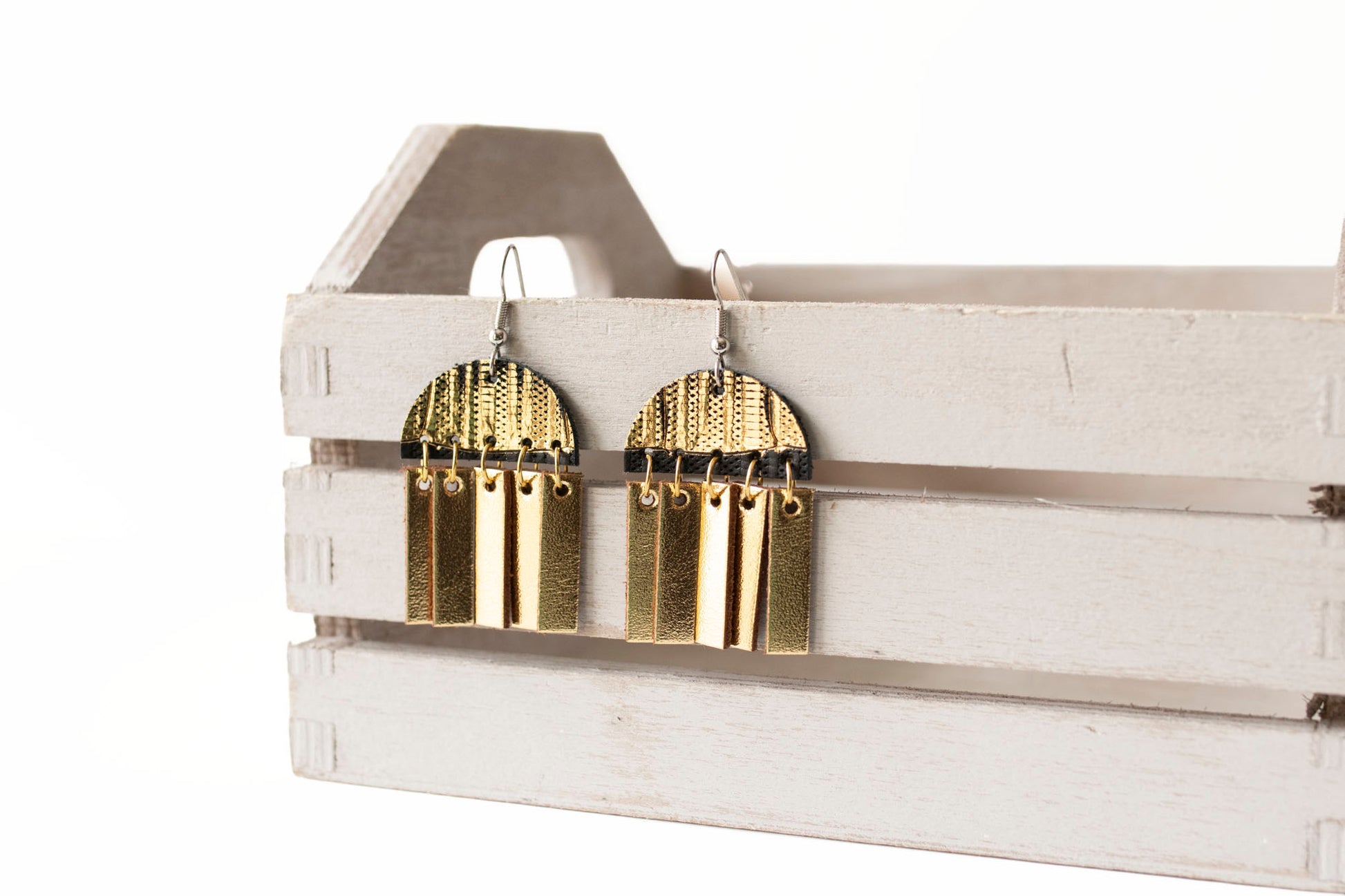 Cinque Luci, in Italian, means 5 lights! Just like a brilliant chandelier that catches your eye, these beautiful statement earrings are incredibly lightweight and pack a huge punch of leather style right on your ear!