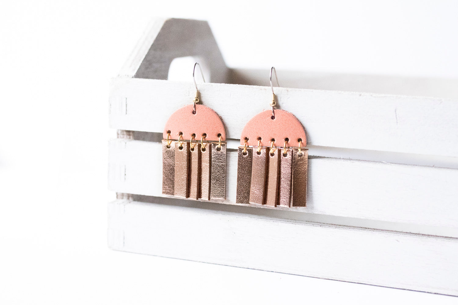 Cinque Luci, in Italian, means 5 lights! Just like a brilliant chandelier that catches your eye, these beautiful statement earrings are incredibly lightweight and pack a huge punch of leather style right on your ear!