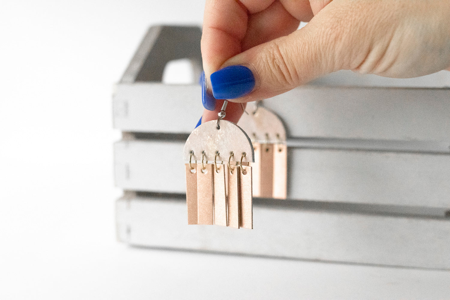 Cinque Luci, in Italian, means 5 lights! Just like a brilliant chandelier that catches your eye, these beautiful statement earrings are incredibly lightweight and pack a huge punch of leather style right on your ear!