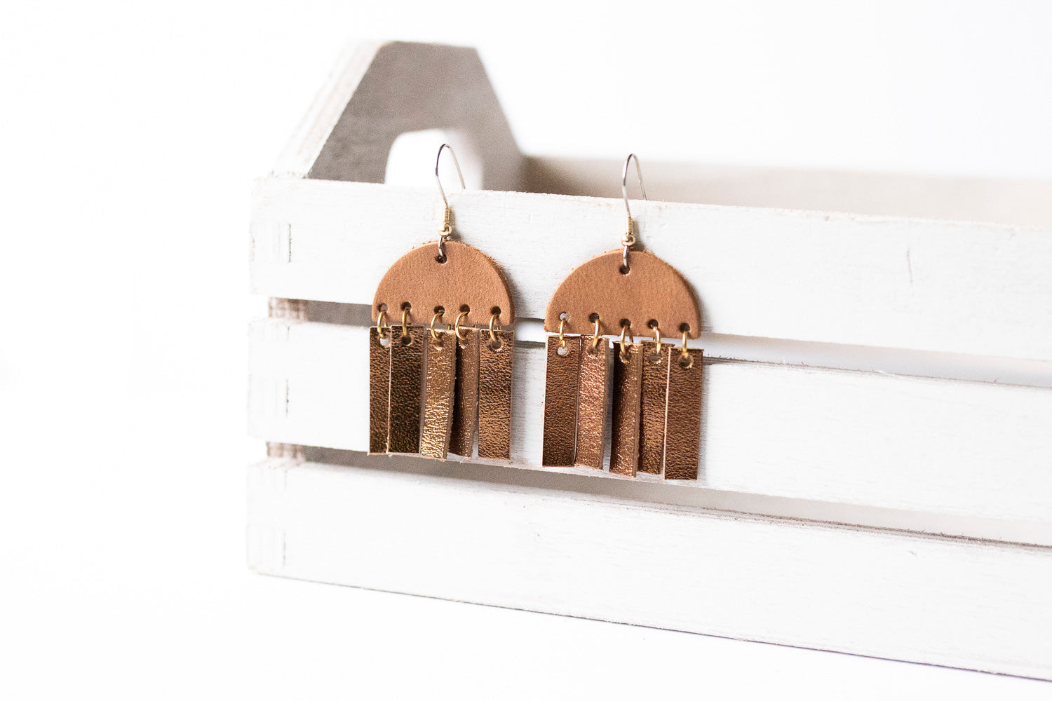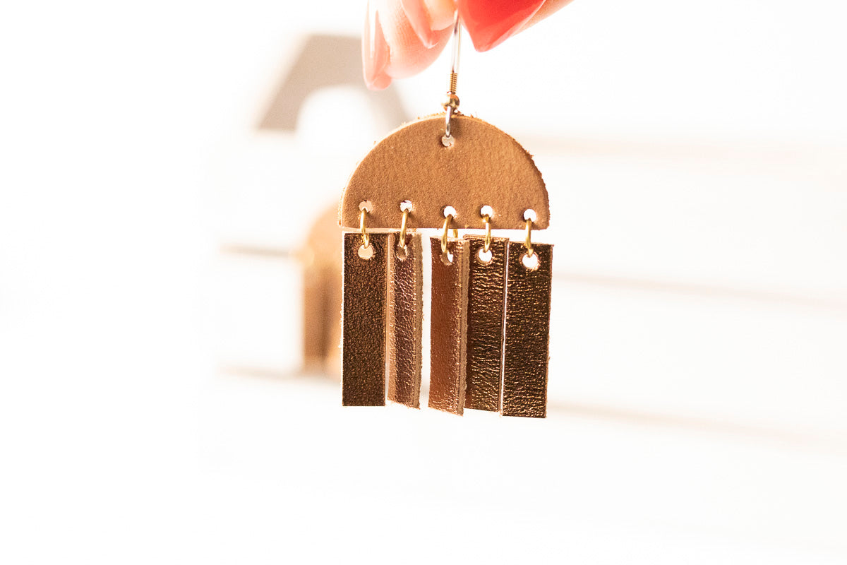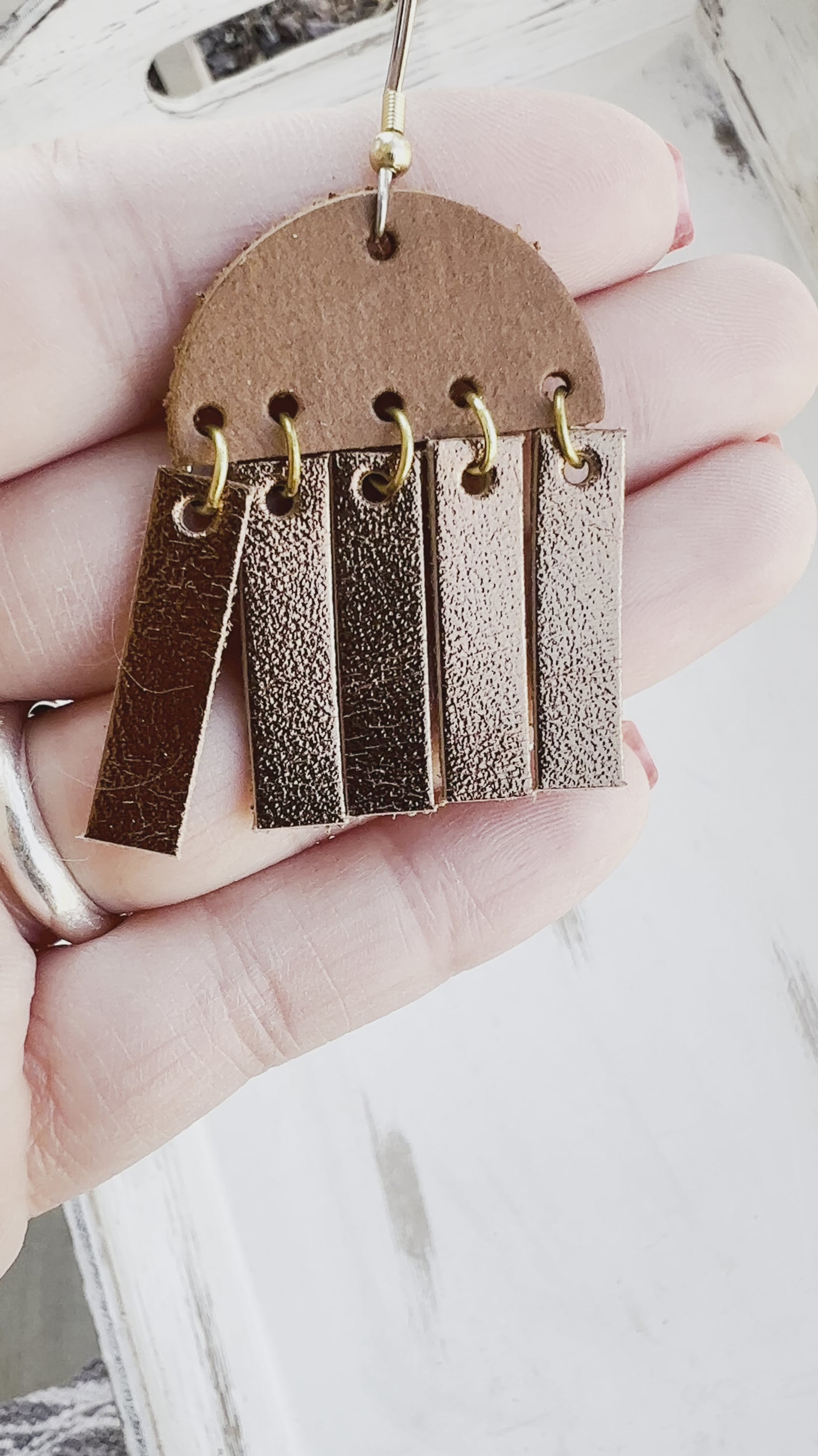 Cinque Luci, in Italian, means 5 lights! Just like a brilliant chandelier that catches your eye, these beautiful statement earrings are incredibly lightweight and pack a huge punch of leather style right on your ear!