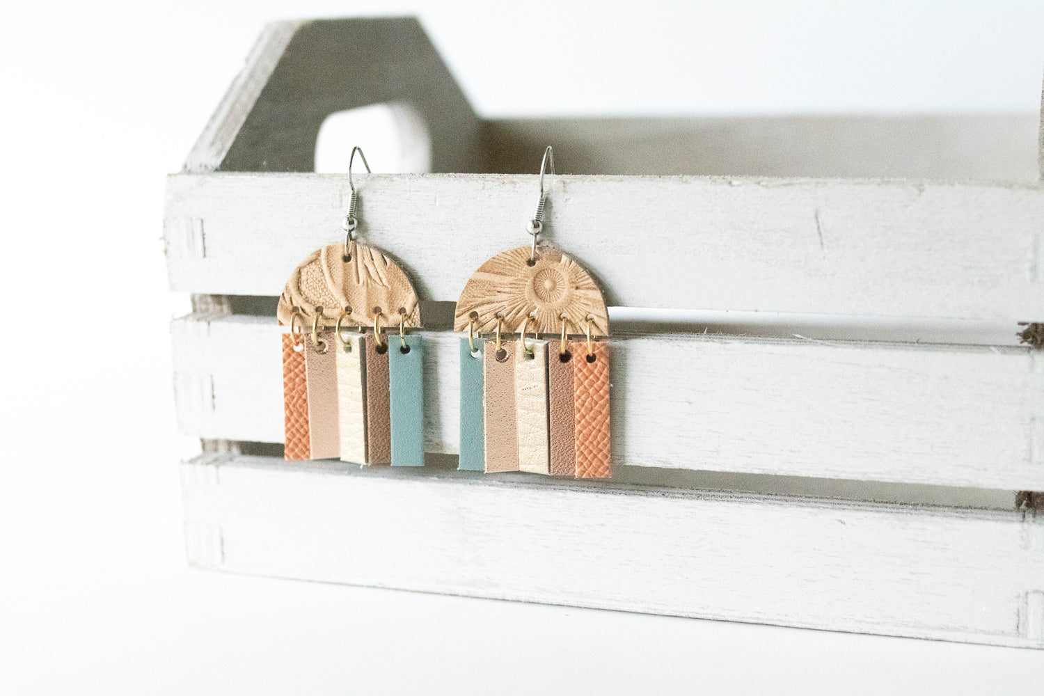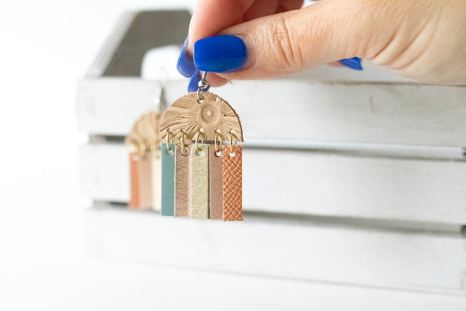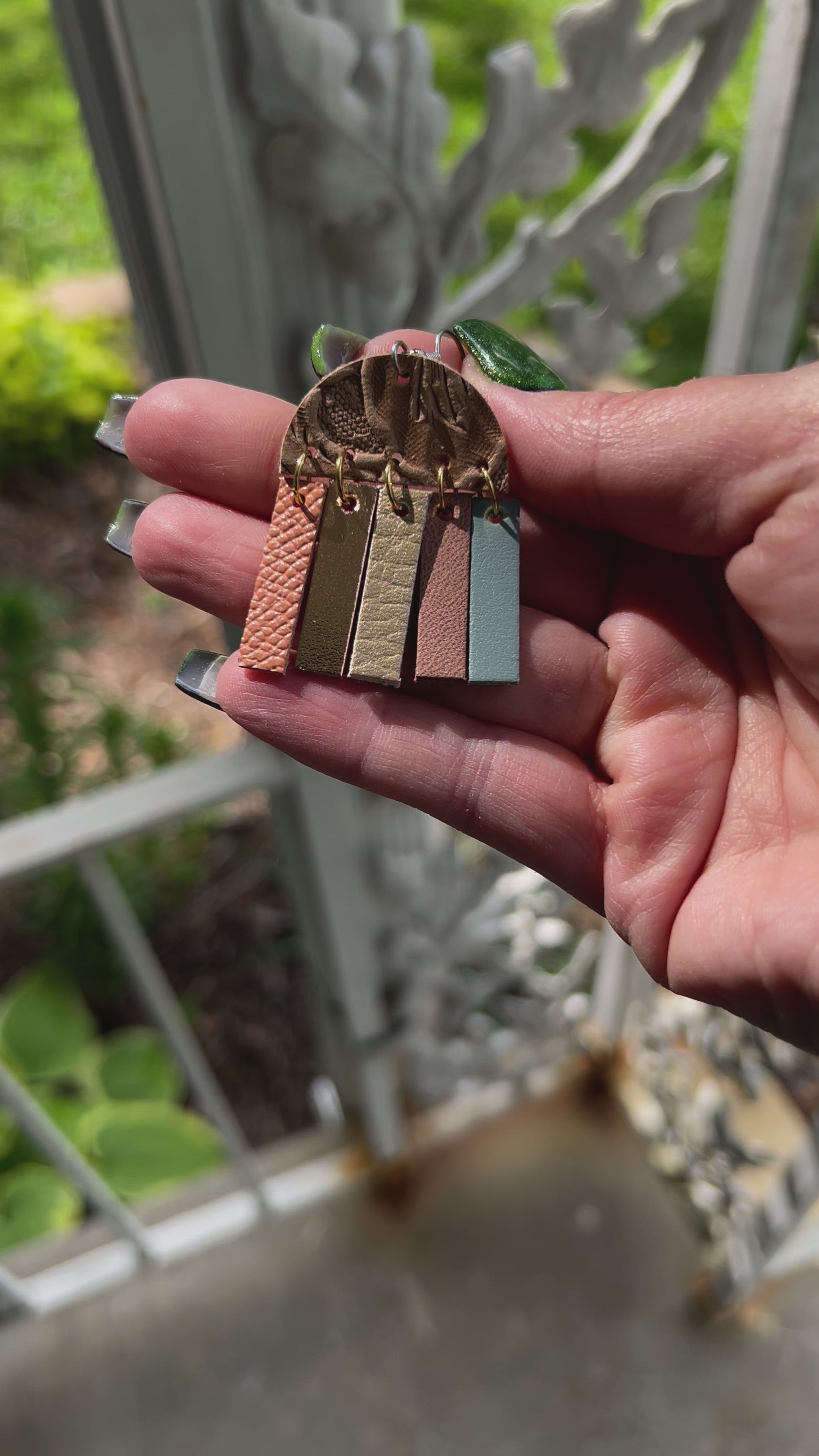 Cinque Luci, in Italian, means 5 lights! Just like a brilliant chandelier that catches your eye, these beautiful statement earrings are incredibly lightweight and pack a huge punch of leather style right on your ear!