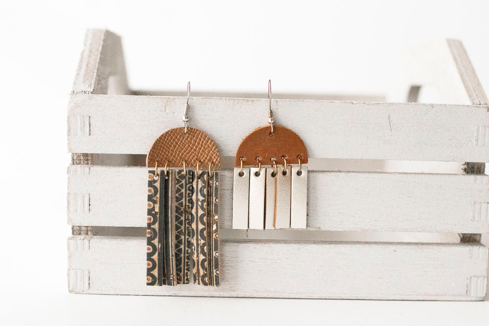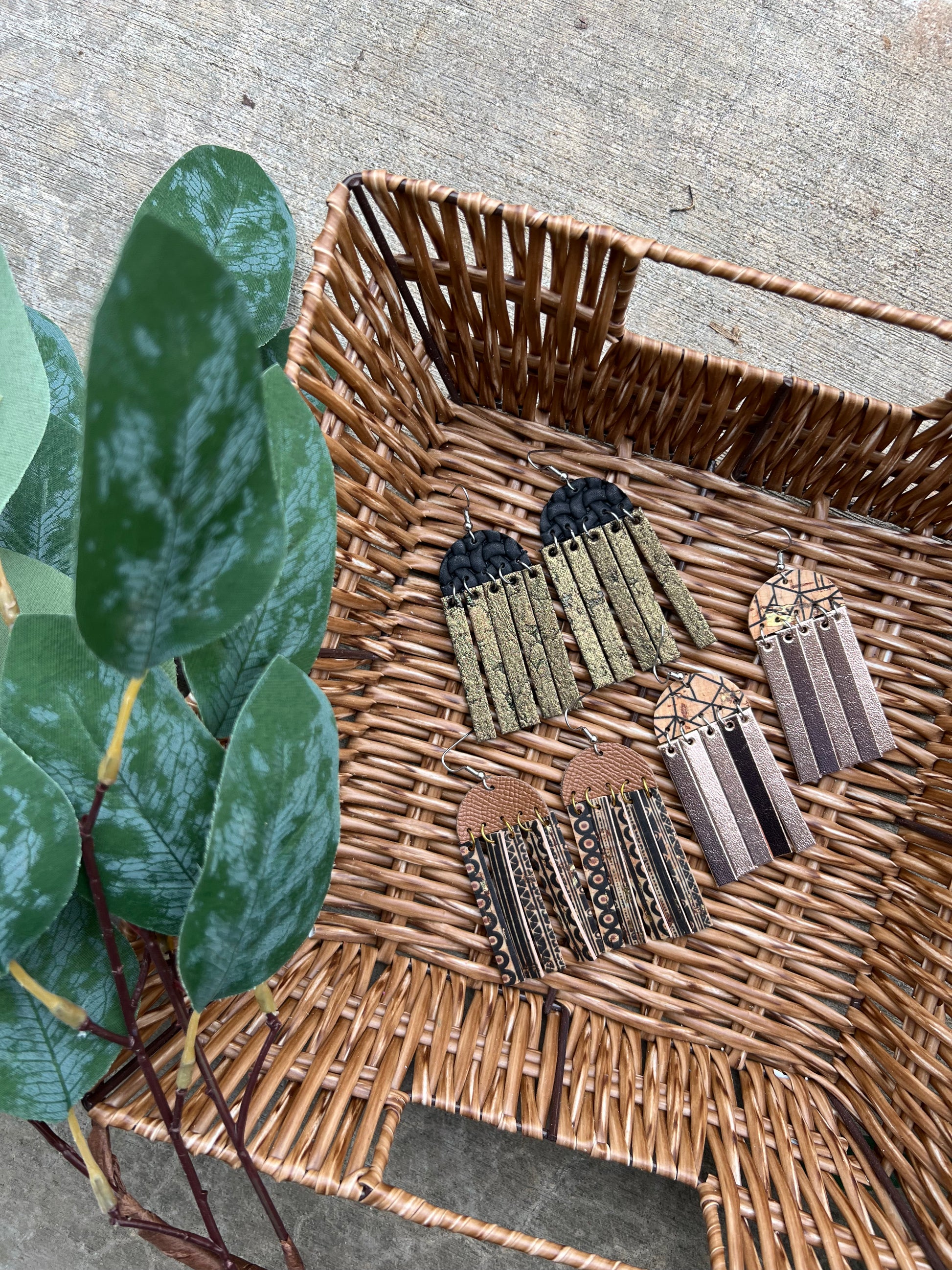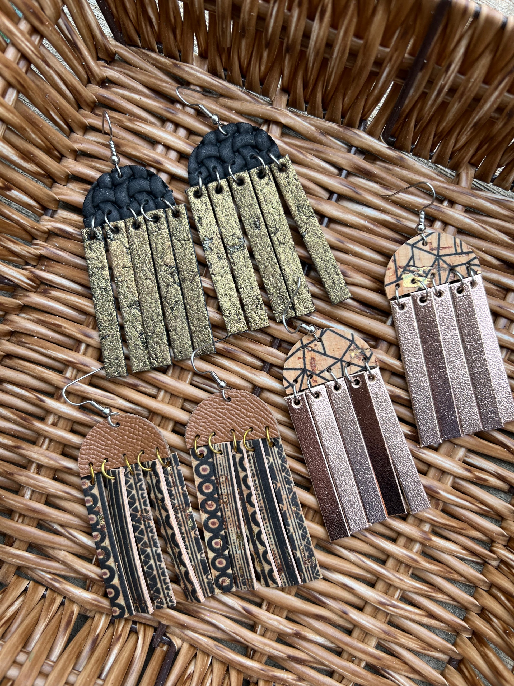 Leather Earrings / Cinque Luci XL / Pecan Pie