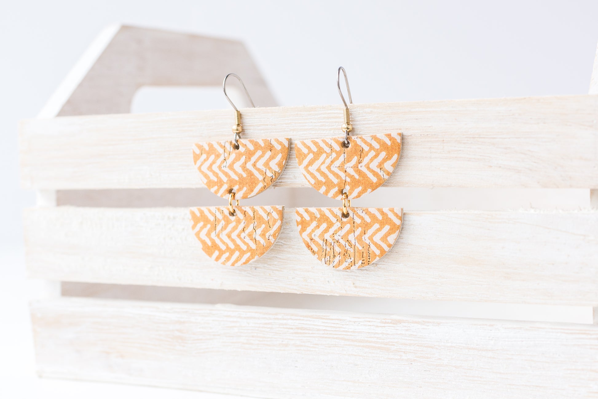Leather Earrings / Demi Luna / Apricot Cork